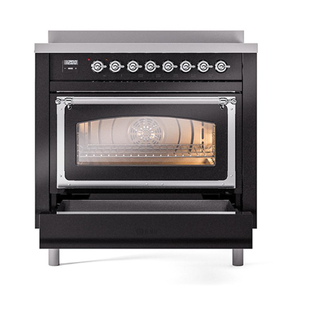 Ilve UNI366NMPBKC Ilve Uni366Nmpbkc Nostalgie Ii Noblesse 36" Induction Range (Triple Glass Door, Glossy Black, Chrome)