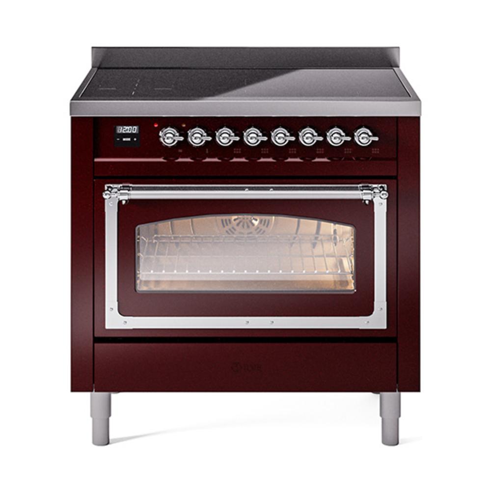 Ilve UNI366NMPBUC Ilve Uni366Nmpbuc Nostalgie Ii Noblesse 36" Induction Range (Triple Glass Door, Burgundy, Chrome)