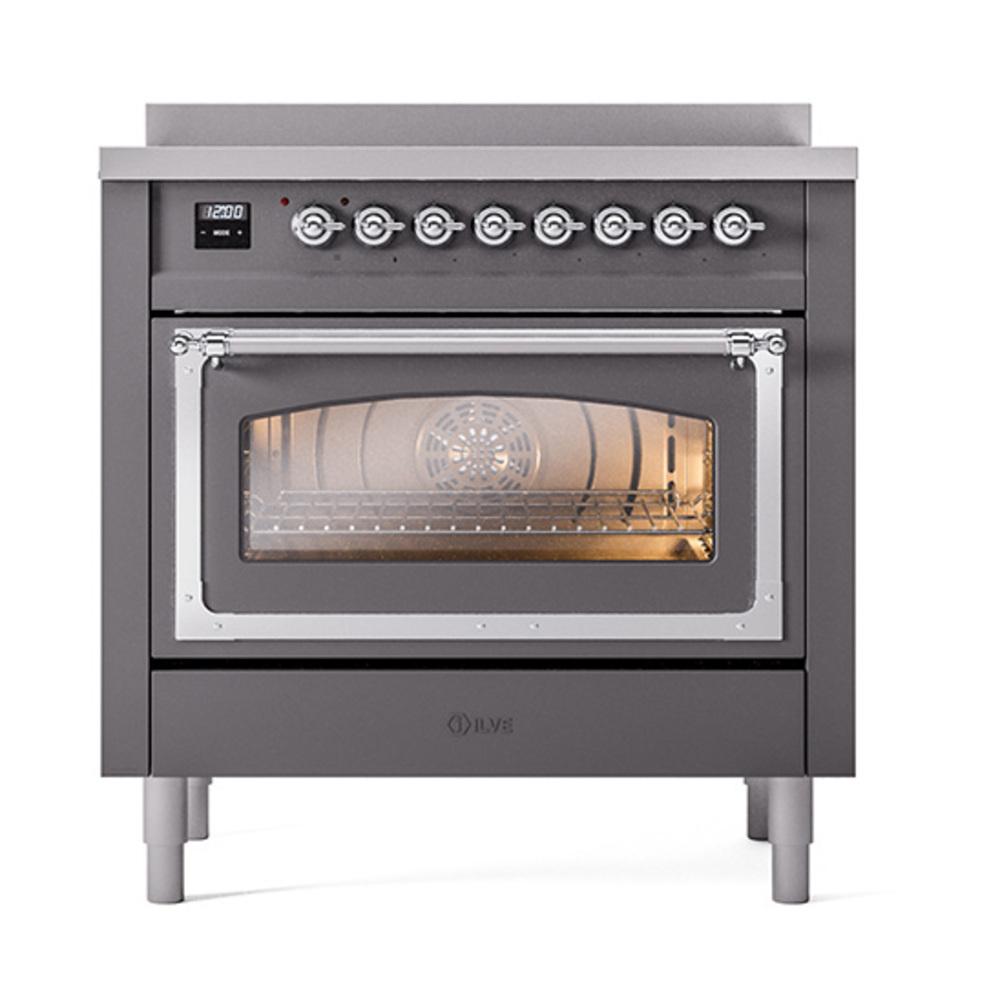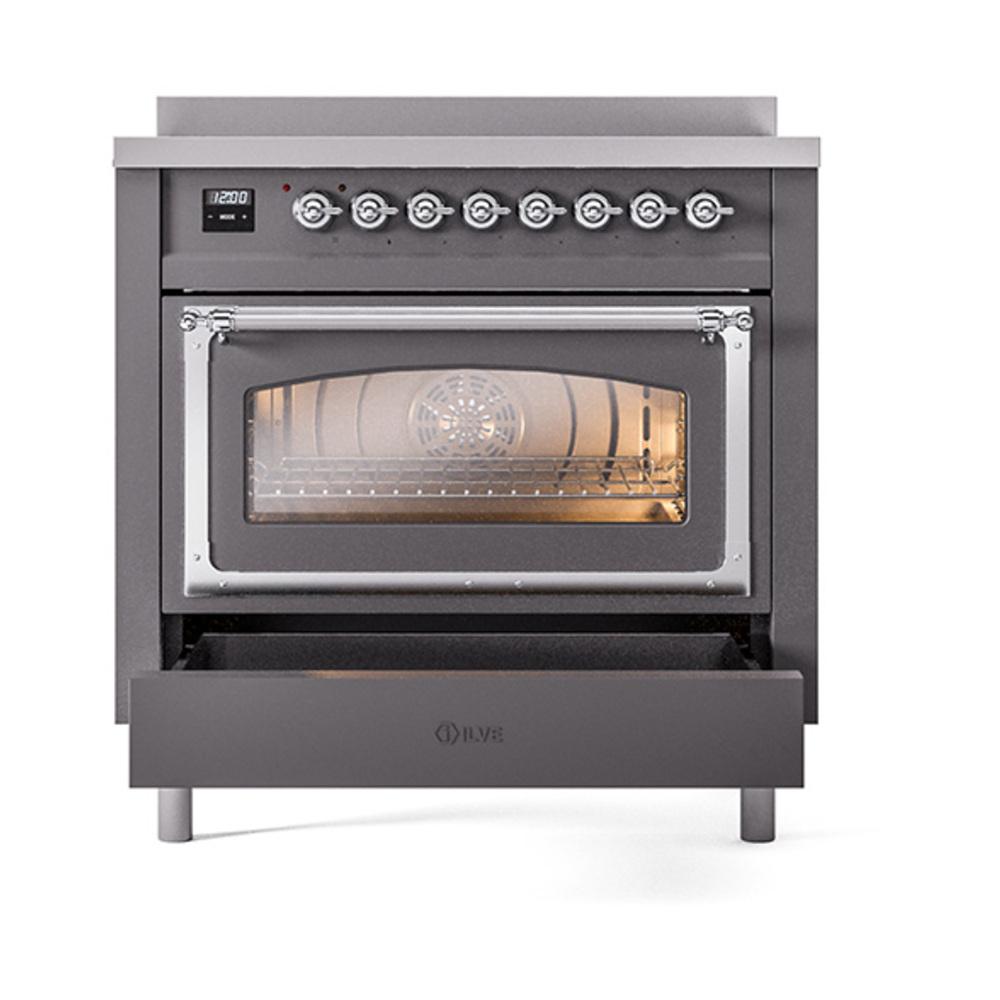 Ilve UNI366NMPMGC Ilve Uni366Nmpmgc Nostalgie Ii Noblesse 36" Induction Range (Triple Glass Door, Graphite Matte, Chrome)