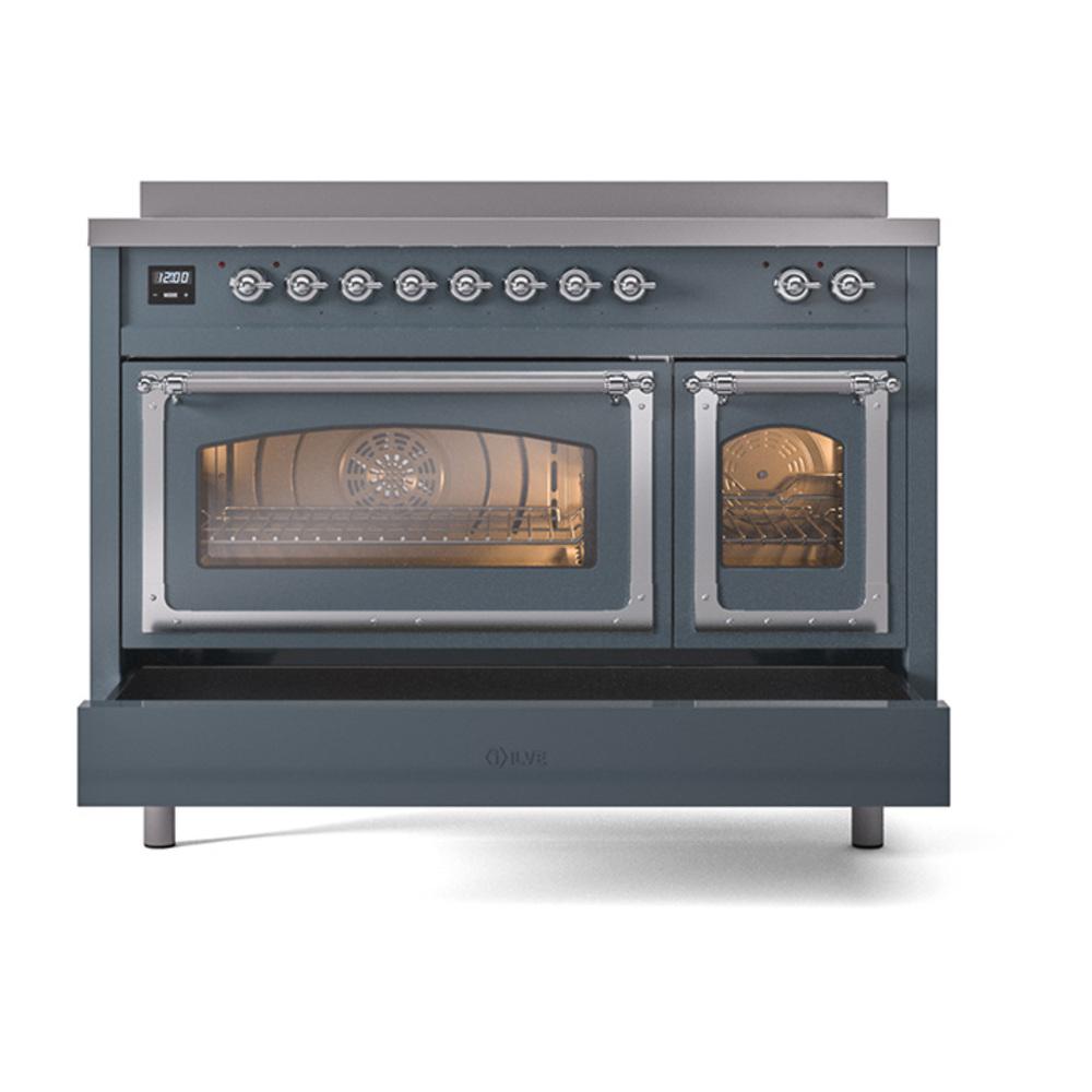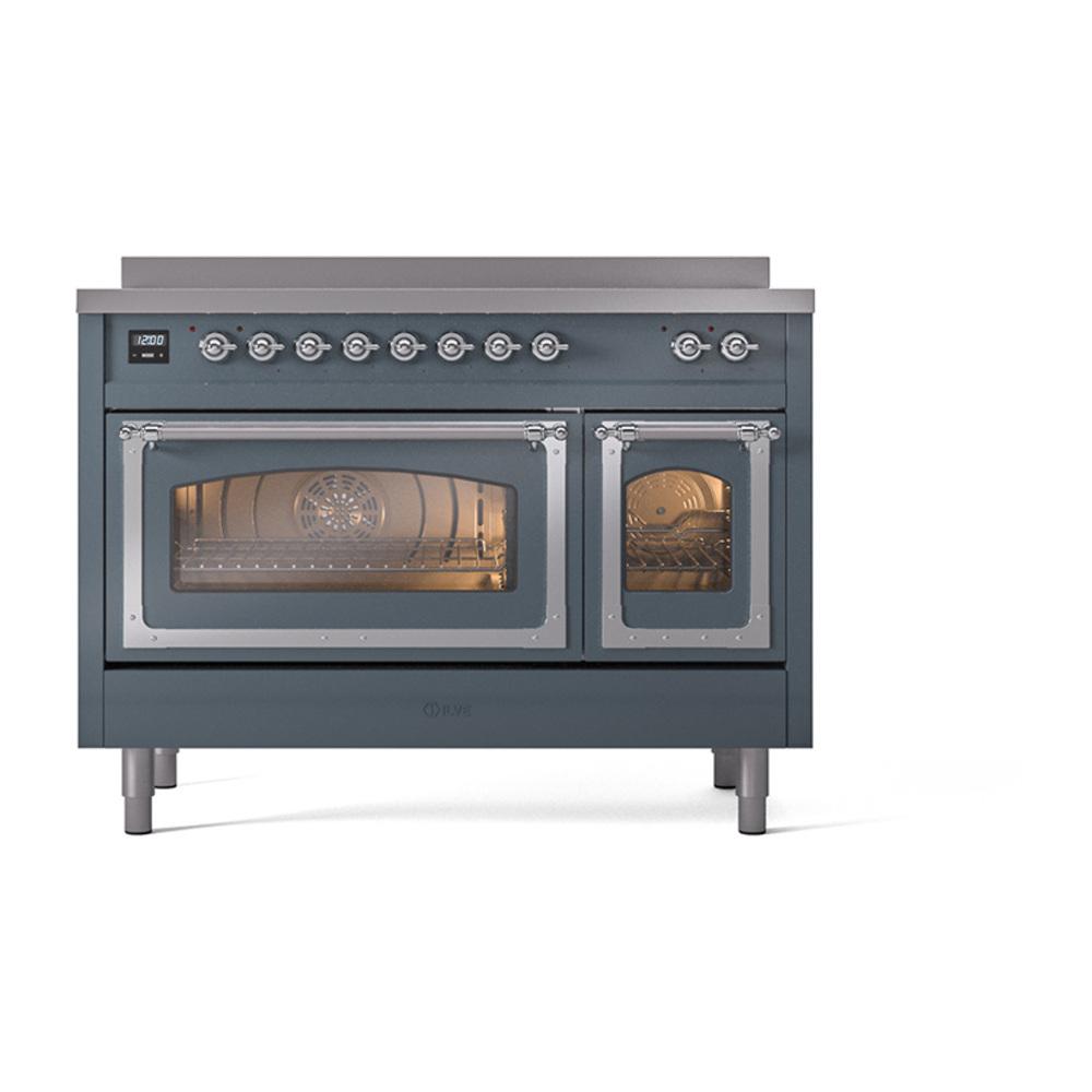 Ilve UNI486NMPBGC Ilve Uni486Nmpbgc Nostalgie Ii Noblesse 48" Induction Range (Triple Glass Door, Blue Grey, Chrome)