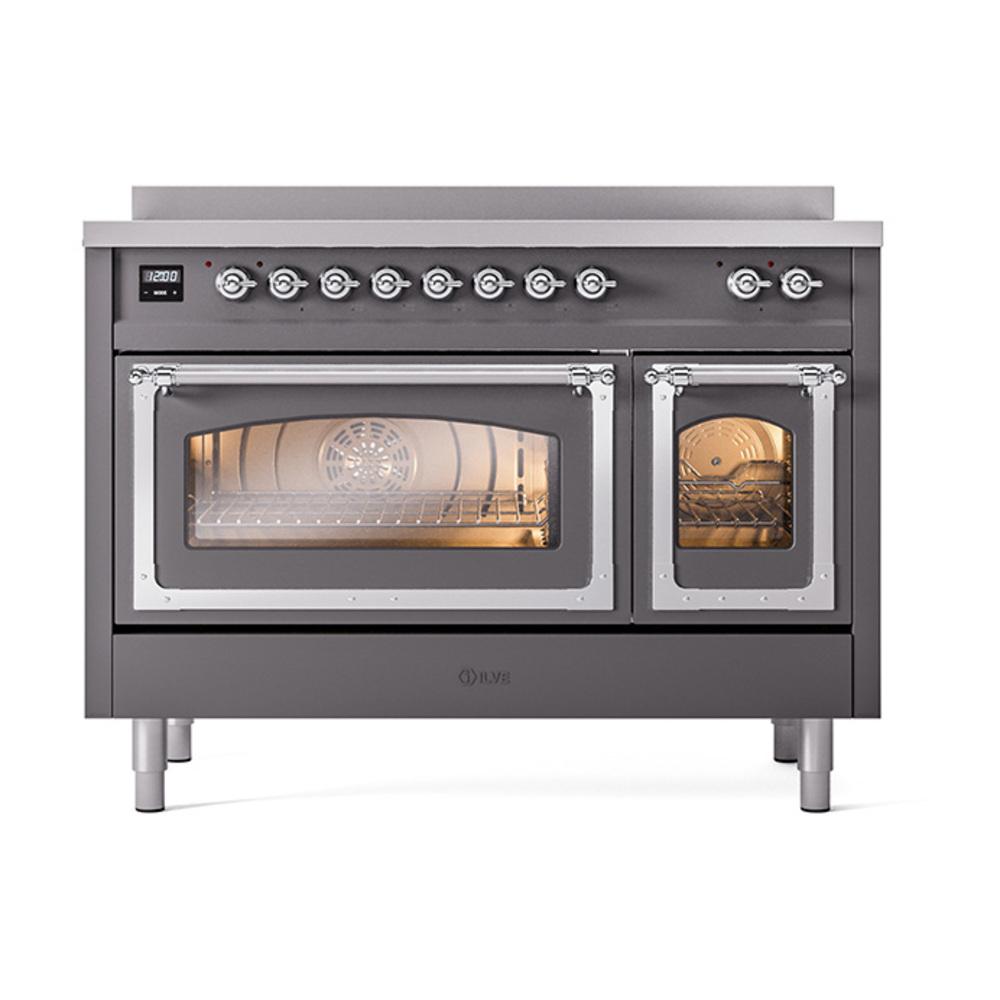 Ilve UNI486NMPMGC Ilve Uni486Nmpmgc Nostalgie Ii Noblesse 48" Induction Range (Triple Glass Door, Graphite Matte, Chrome)