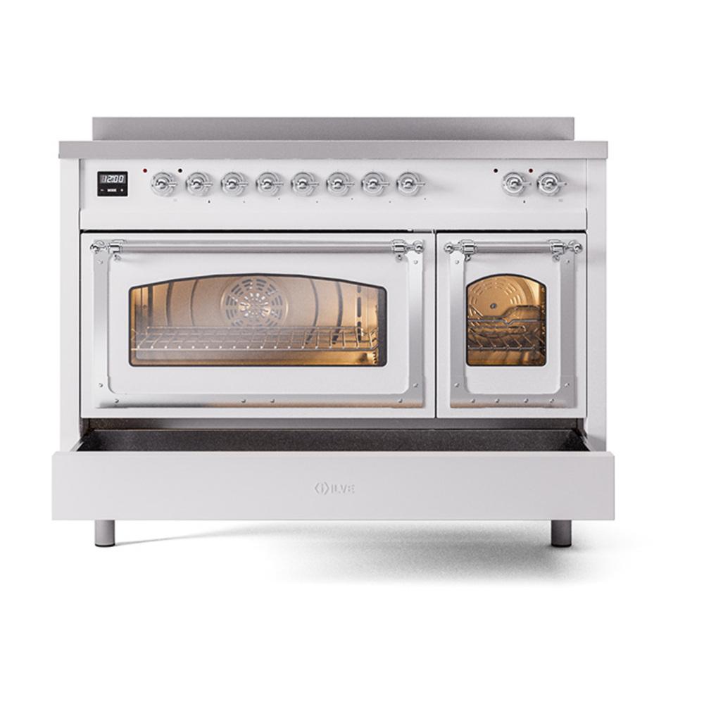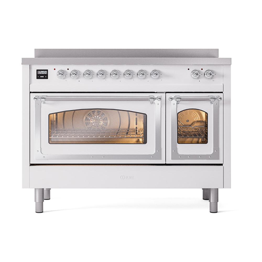 Ilve UNI486NMPWHC Ilve Uni486Nmpwhc Nostalgie Ii Noblesse 48" Induction Range (Triple Glass Door, White, Chrome)