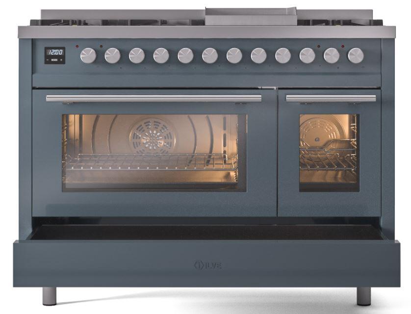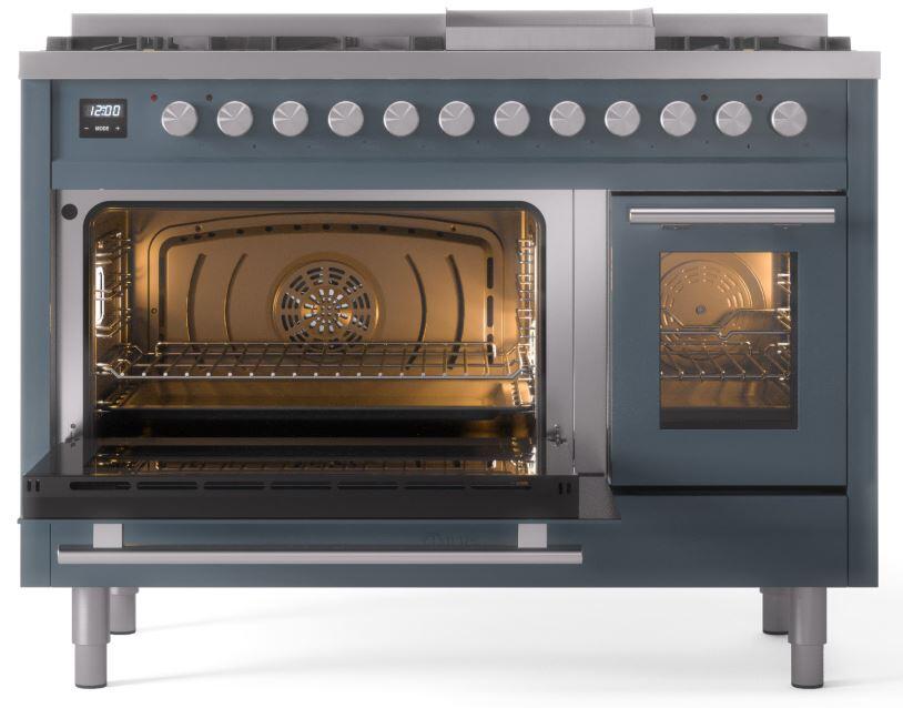 Ilve UP48FWMPBGLP Professional Plus Ii 48 Inch Dual Fuel Liquid Propane Freestanding Range In Blue Grey With Trim