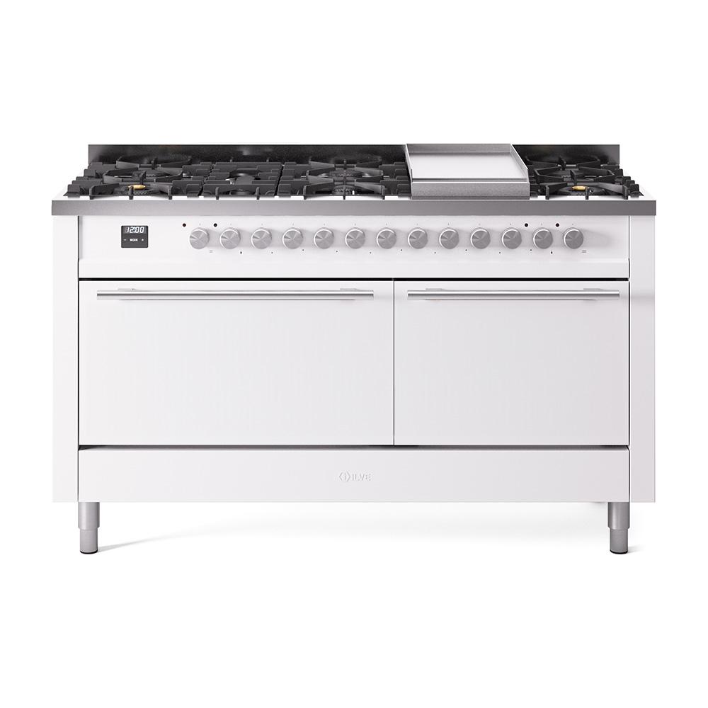Ilve UP60FQMPWHLP Ilve Professional Plus Ii 60 Up60Fqmpwh Freestanding Dual Fuel Range With 9 Sealed Burners Double Oven With Solid Door In White With Stainless Steel Knobs