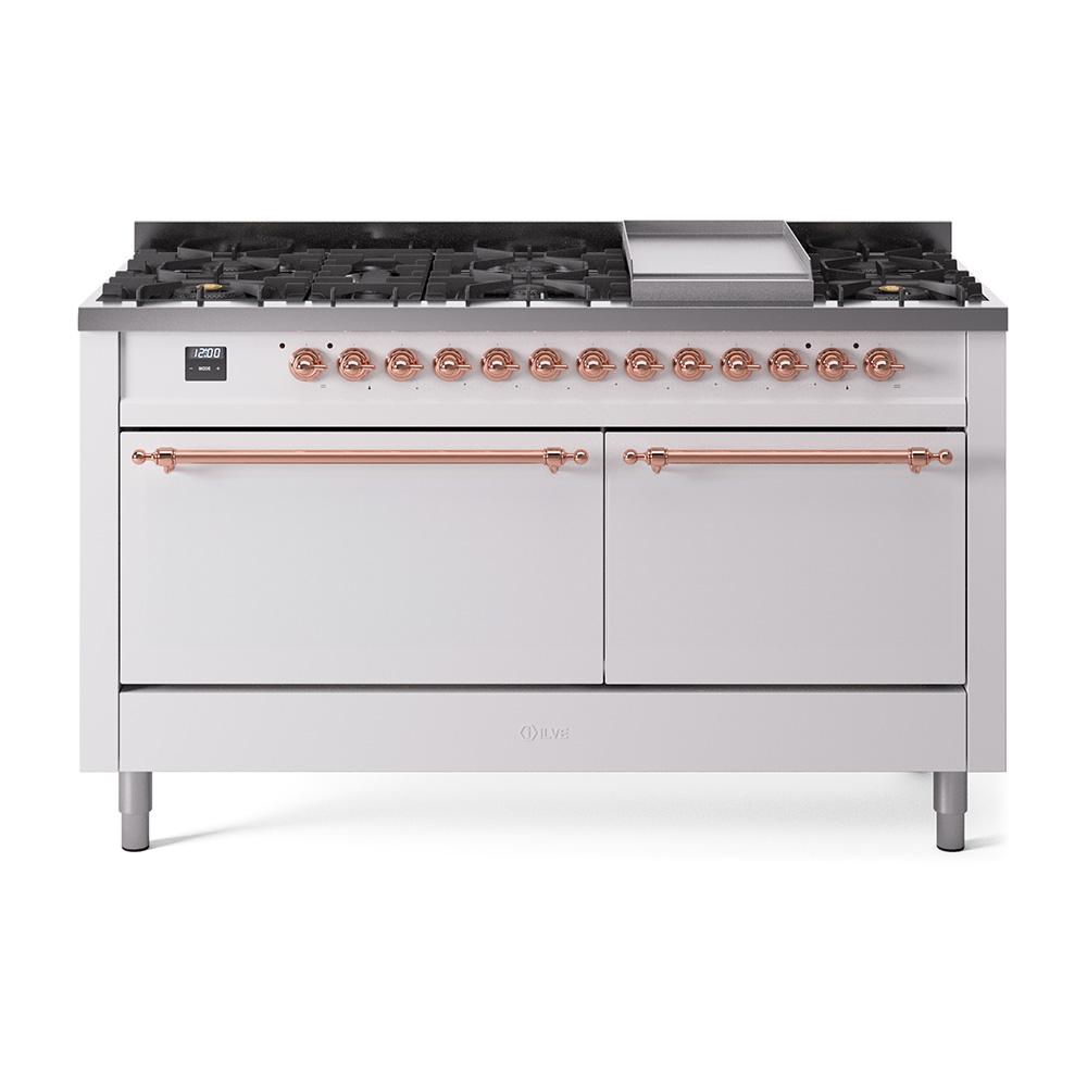 Ilve UP60FQNMPWHPLP Ilve Nostalgie Ii 60 Up60Fqnmpwhp Freestanding Dual Fuel Range With 9 Sealed Burners Double Oven With Solid Door In White With Copper Knobs