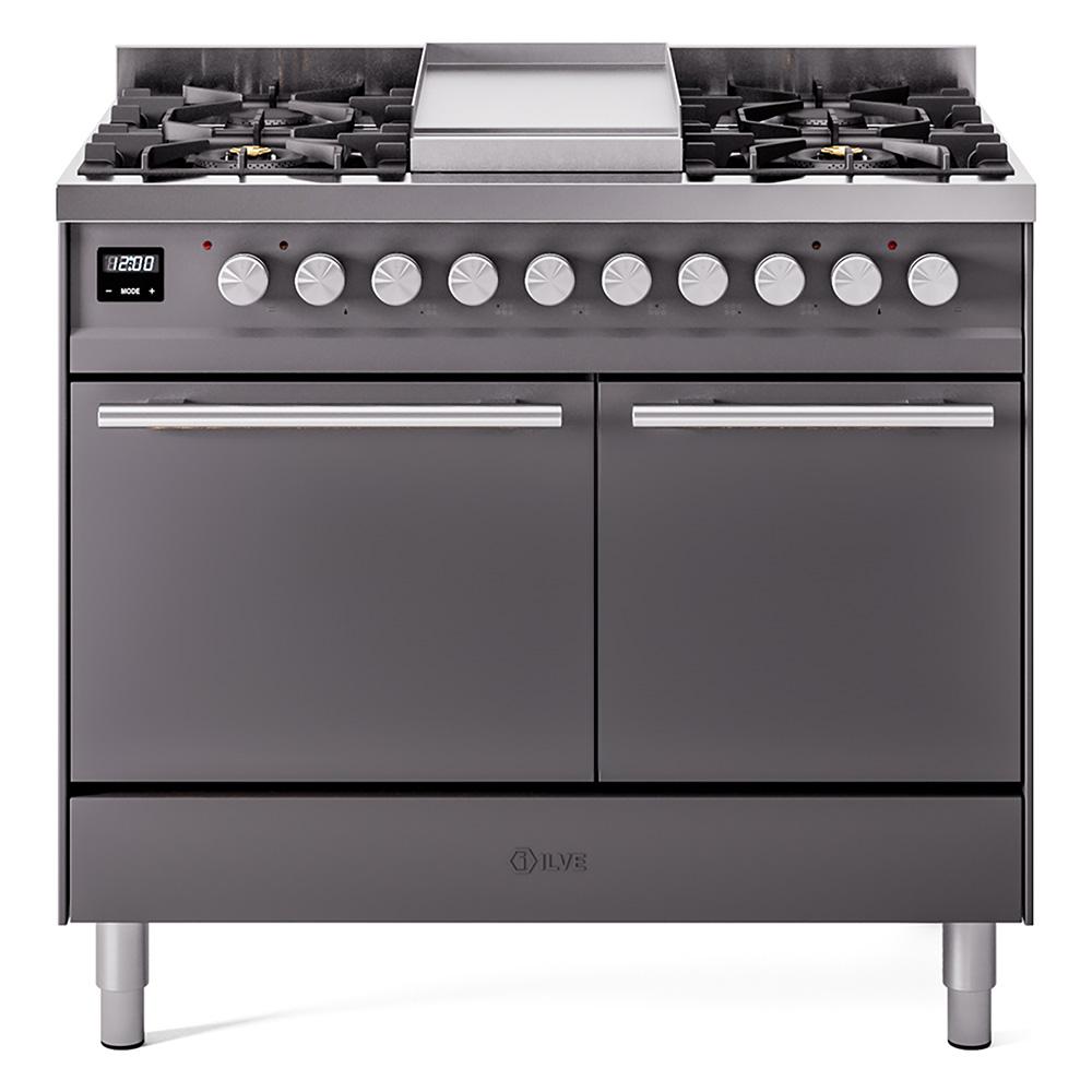 Ilve UPD40FQMPMGLP Ilve Professional Plus Ii 40 Upd40Fqmpmg Freestanding Dual Fuel Range With 6 Sealed Burners Yes Double Oven With Solid Door In Graphite Matte With Stainless Steel Knobs