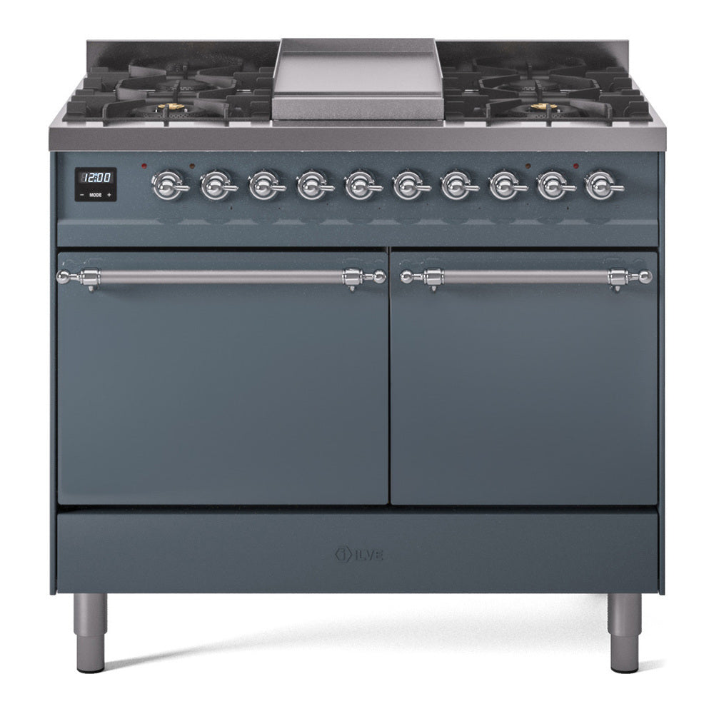 Ilve UPD40FQNMPBGCLP Nostalgie Ii 40 Inch Dual Fuel Liquid Propane Freestanding Range In Blue Grey With Chrome Trim
