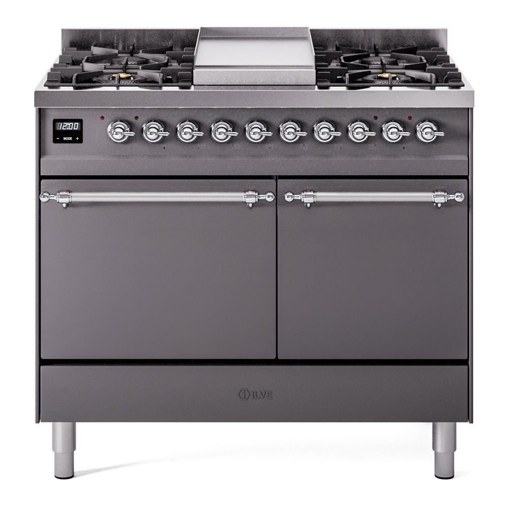 Ilve UPD40FQNMPMGCLP Nostalgie Ii 40 Inch Dual Fuel Liquid Propane Freestanding Range In Matte Graphite With Chrome Trim