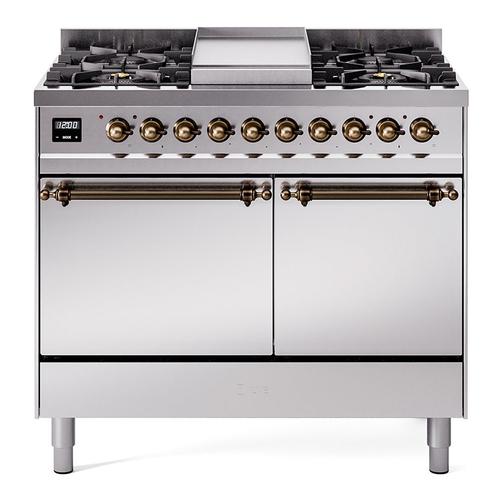 Ilve UPD40FQNMPSSB Nostalgie Ii 40 Inch Dual Fuel Natural Gas Freestanding Range In Stainless Steel With Bronze Trim