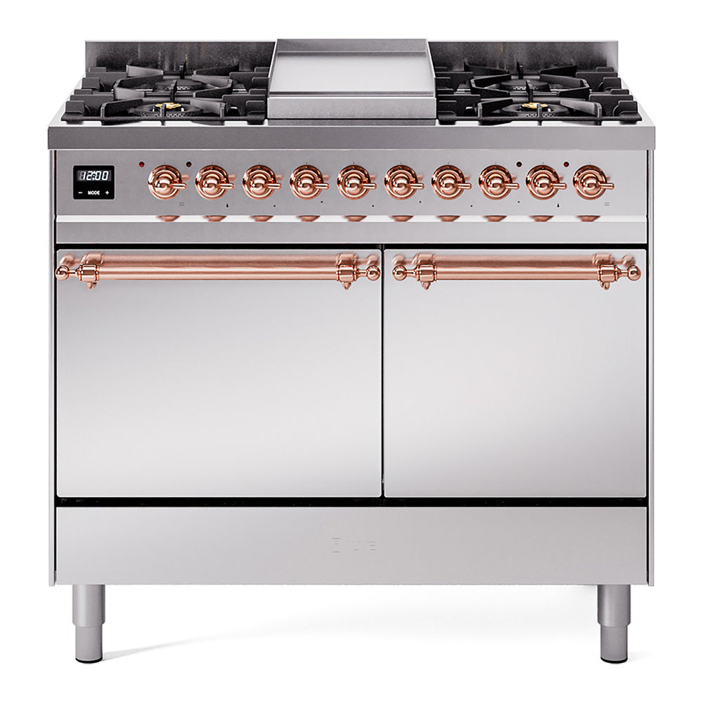 Ilve UPD40FQNMPSSPLP Nostalgie Ii 40 Inch Dual Fuel Liquid Propane Freestanding Range In Stainless Steel With Copper Trim