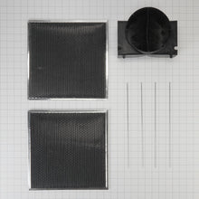 The kit includes (2) charcoal filters and (4) clips and is designed to be used with 30" Whirlpool® wall-mount range hood models WVW31430LS, WVW31436LS, WVW53UC0LS and WVW53UC6LS; check to see if your model number is compatible.