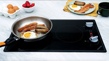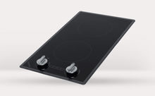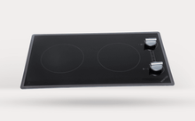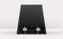 The Cortez Series 21" electric cooktop by Kenyon offer two burners with 1200 watts of power each. With smooth, easy-to-clean clear black glass and stainless steel colored knobs, the cooktop looks great in any kitchen.