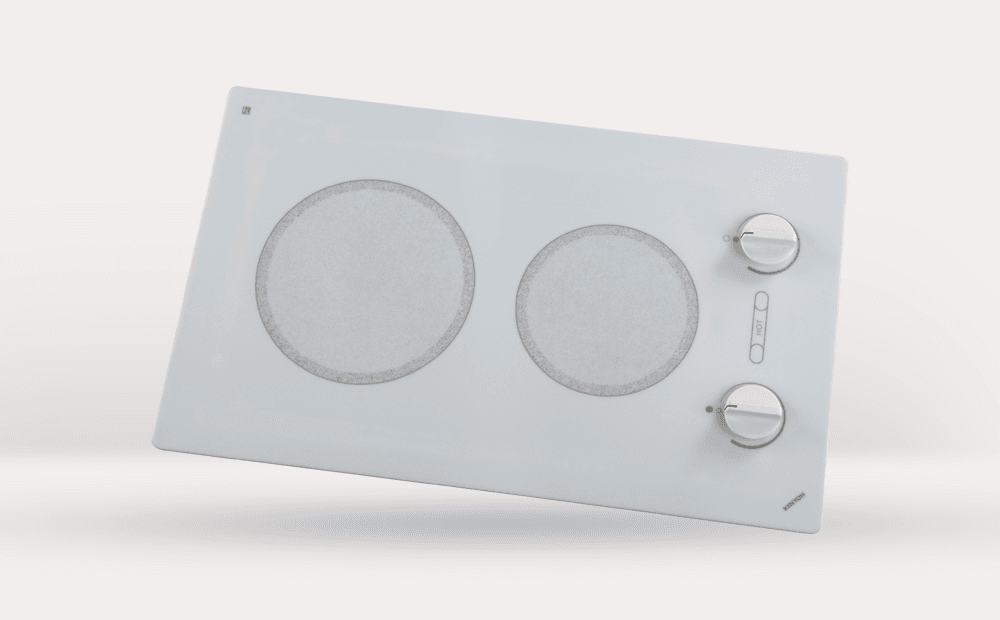 - Alpine Cooktop: The Alpine 2-Burner Electric Cooktop’s style was designed with usability to appeal to every cook who’s ever donned an apron. The cool white tone of the ceramic glass provides a distinctive look of luxury that adds ambiance to any kitchen.
