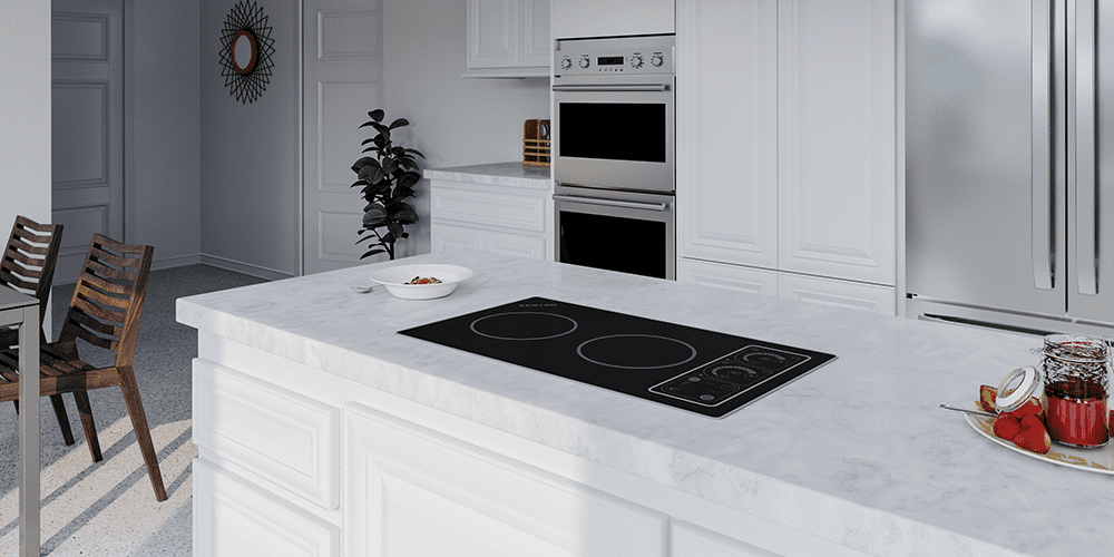 - SilKEN Mat: A removable silicone mat covers the entire cooktop and provides pot retention, confines spills, and splatter, protects the glass top, and is easy to clean.