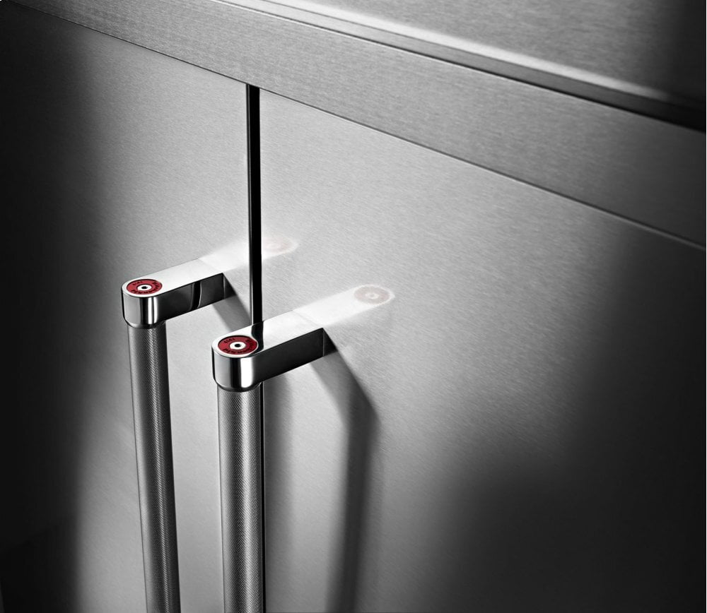 combines a bold blend of professionally-inspired styling with sleek touches for the home. This beautiful side-by-side refrigeration unit features Satin Textured Handles and the KitchenAid(R) Badge, a symbol of uncompromised quality.