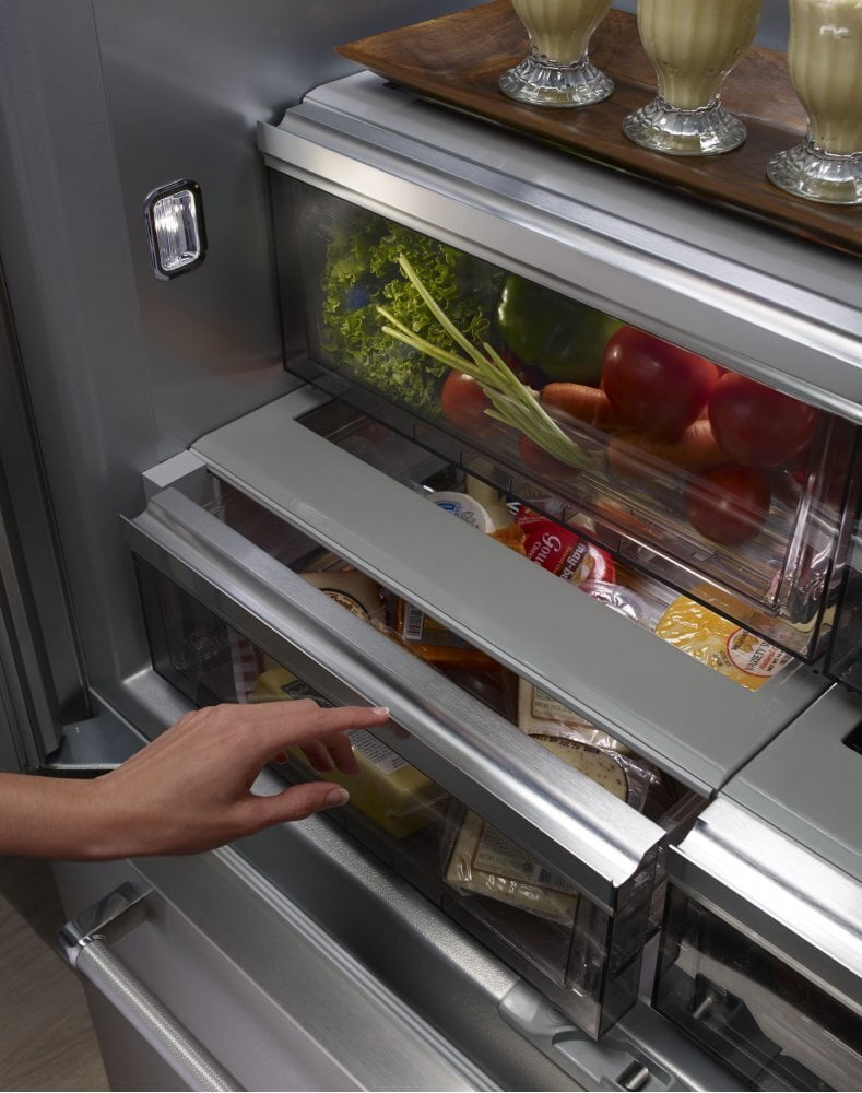 Add a luxury experience to the crisper drawers. The ball bearing rollers and glides allow effortless in-and-out movement even when fully loaded.