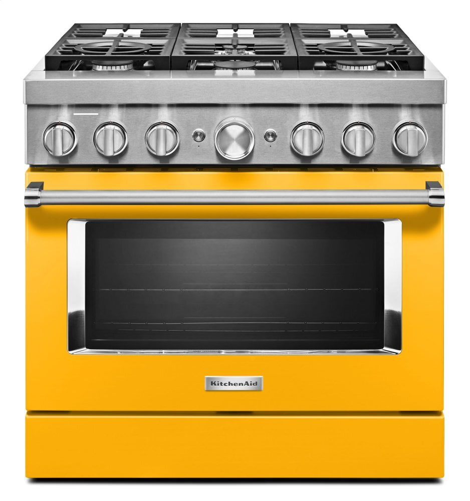 Kitchenaid KFDC506JYP Kitchenaid® 36'' Smart Commercial-Style Dual Fuel Range With 6 Burners - Yellow Pepper