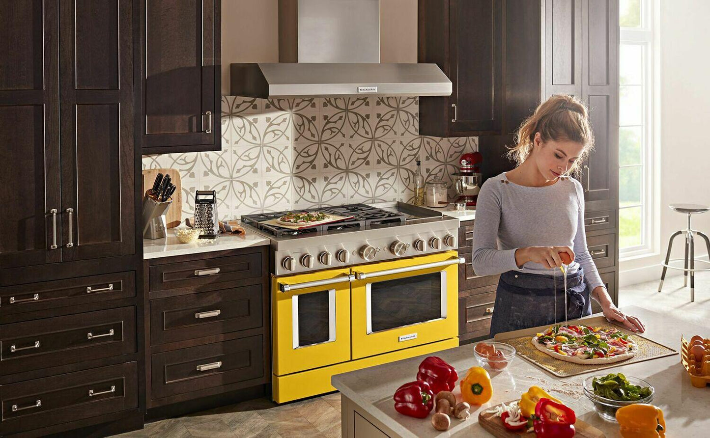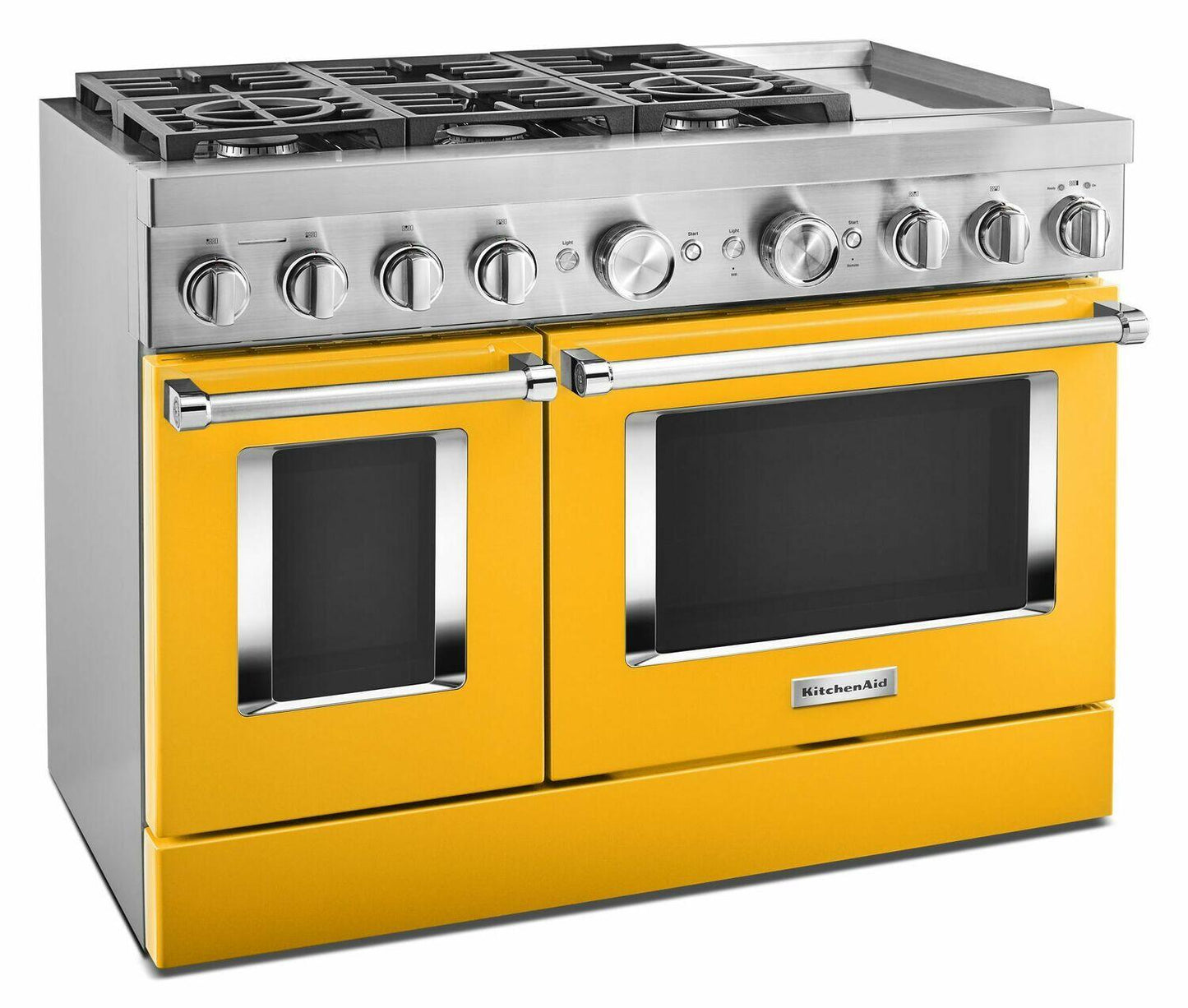 Kitchenaid KFDC558JYP Kitchenaid® 48'' Smart Commercial-Style Dual Fuel Range With Griddle - Yellow Pepper