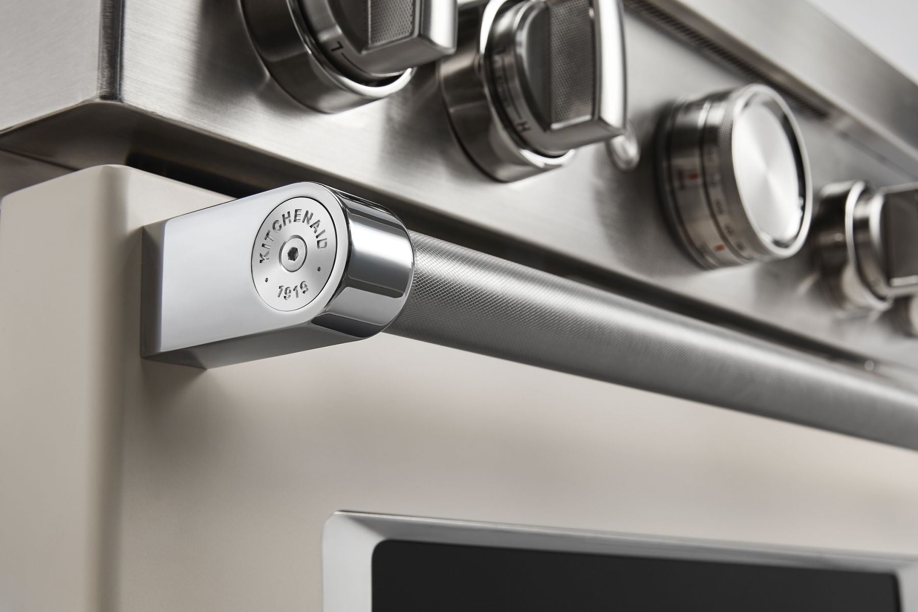 - KitchenAid(R) Handle Medallion Kit (sold separately) - lets you change the color of your commercial-style range handle medallions to add a custom accent. Available in Silver, Dark Blue, Bronze, Black, Copper, Red, New Gold, and Mascarpone. Each kit includes two medallions and a 1/8" hex allen wrench for easy replacement (sold separately)