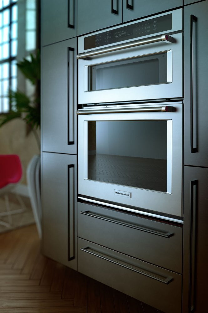 Combines a bold blend of professionally-inspired styling with sleek touches for the home. This beautiful built-in wall oven features Satin Textured Handles and the KitchenAid(R) Badge, a symbol of uncompromised quality.