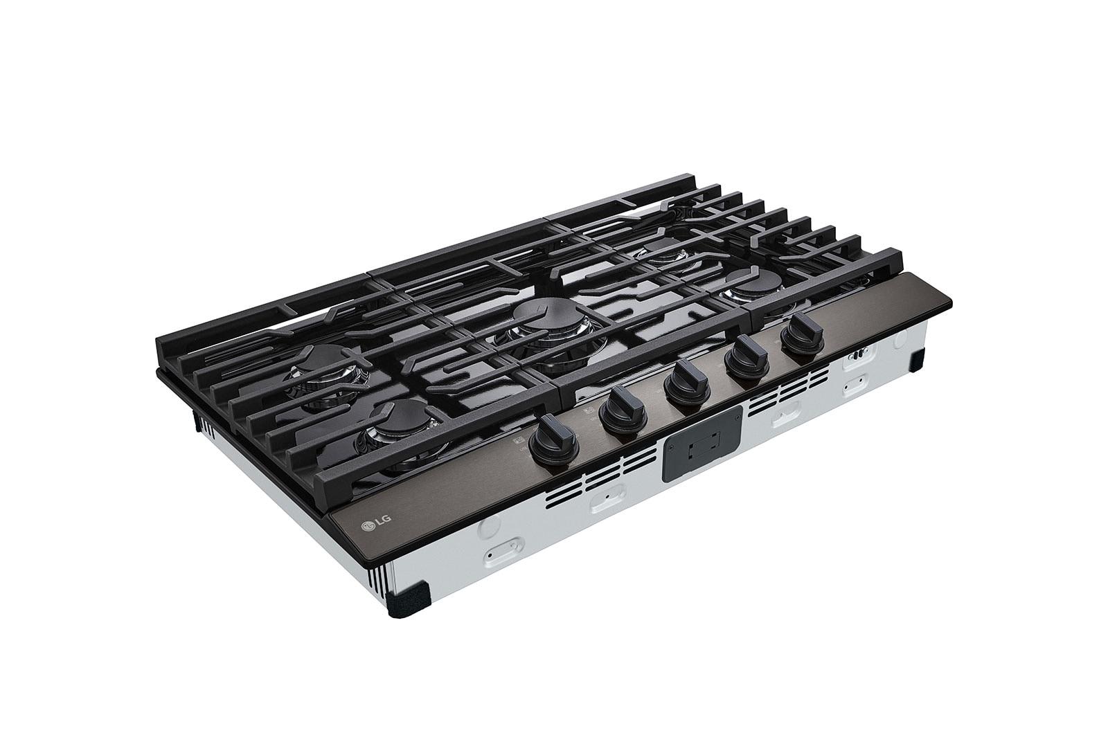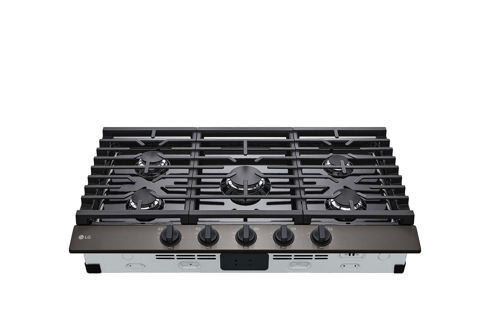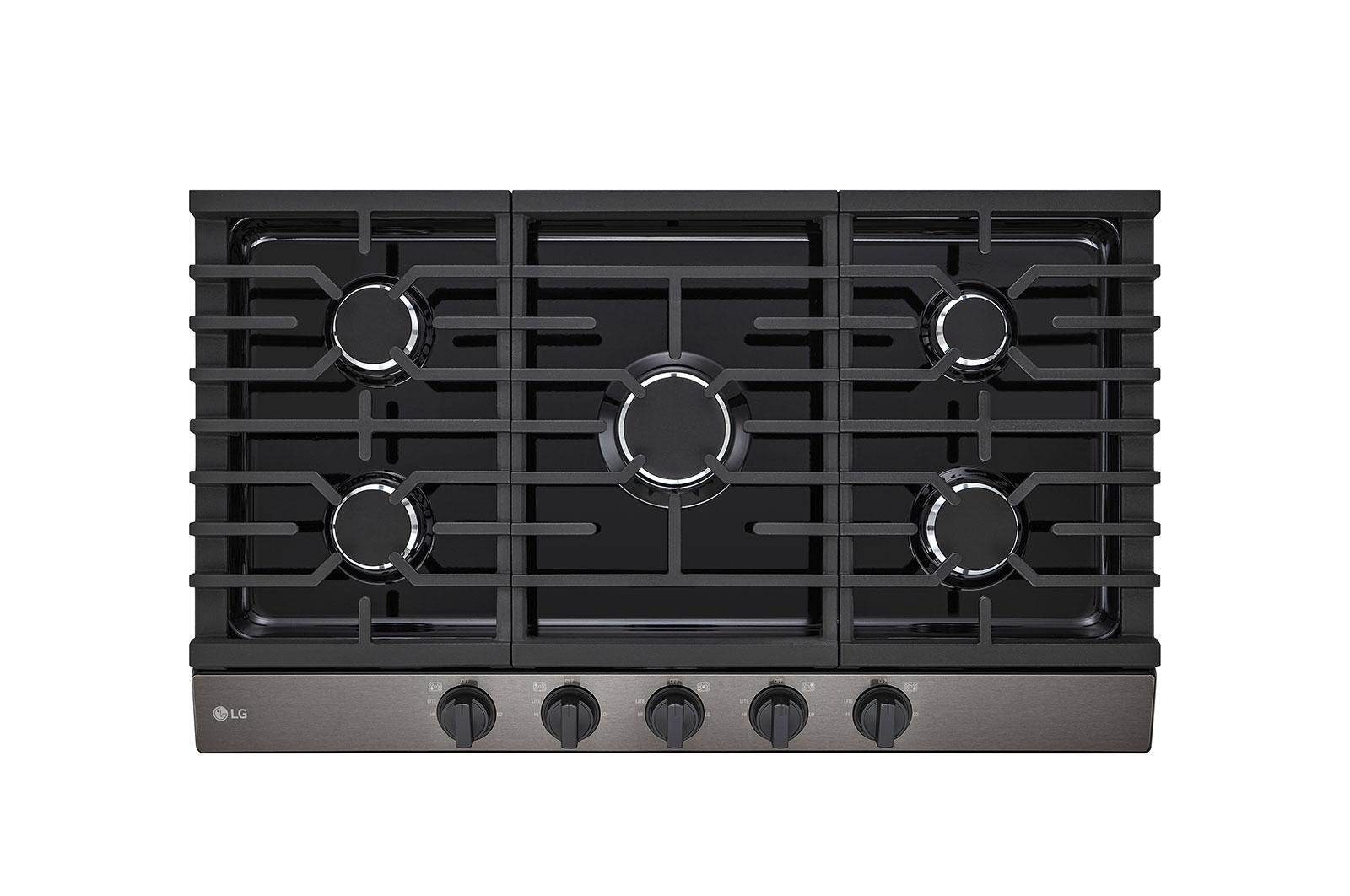 36 Inch Gas Cooktop with 5 Sealed Burners Enjoy high-performance cooking, consistent heat, and heavy-duty continuous cast-iron grates with LG's 36 Inch Gas Cooktop. With the 20K BTU Ultraheat™ Burner, instantly go from sizzle to true simmer.