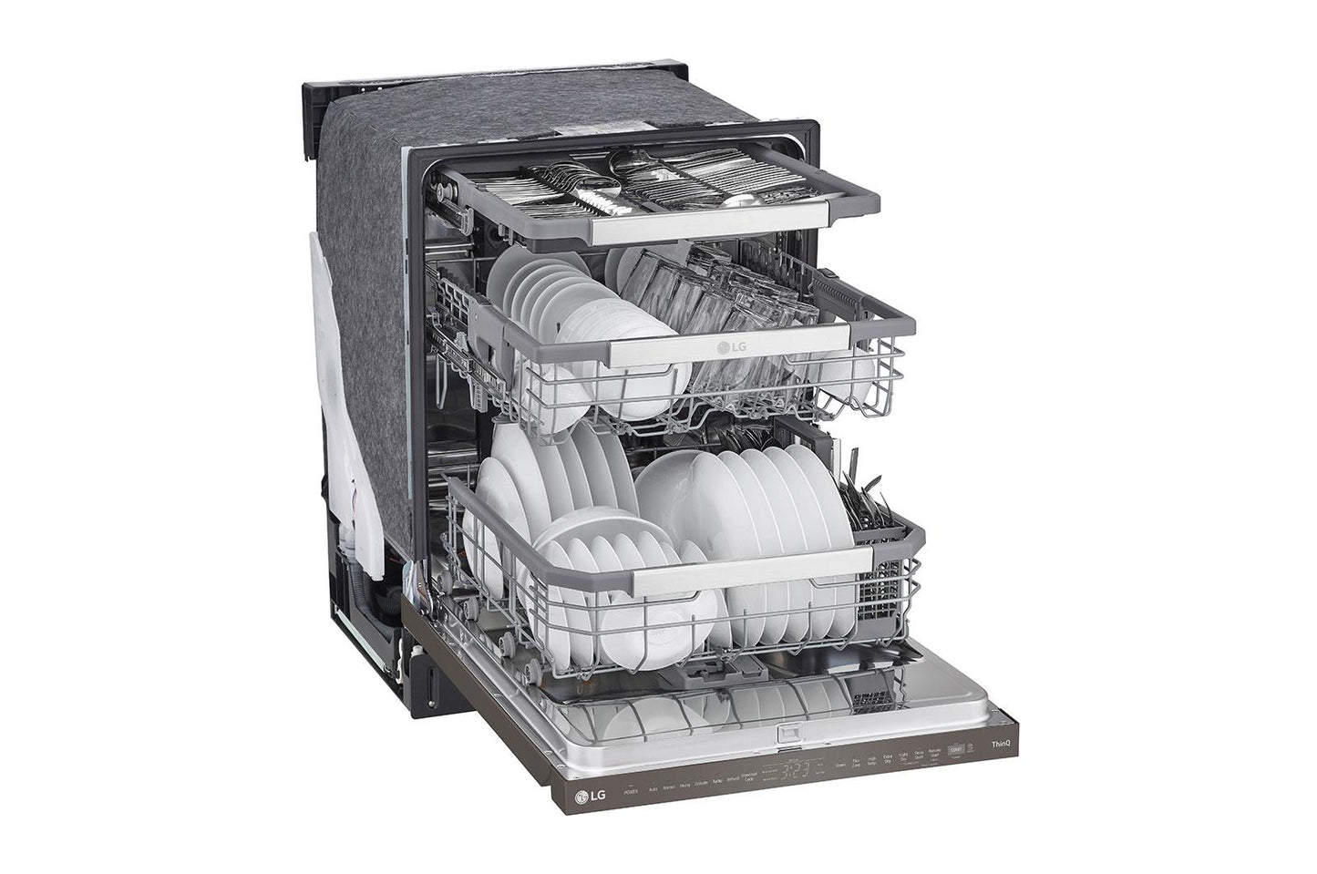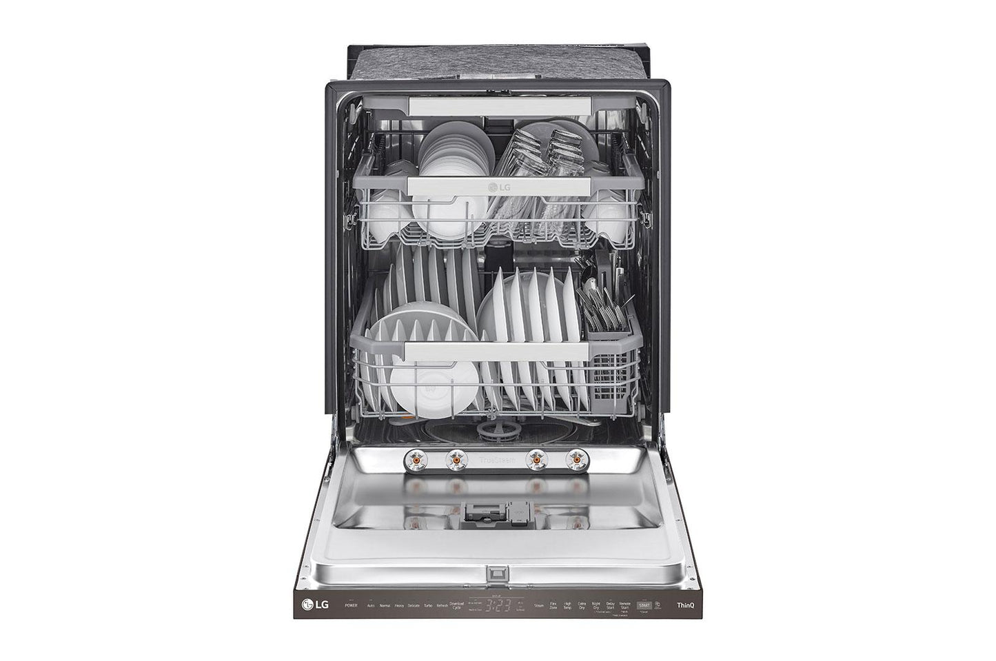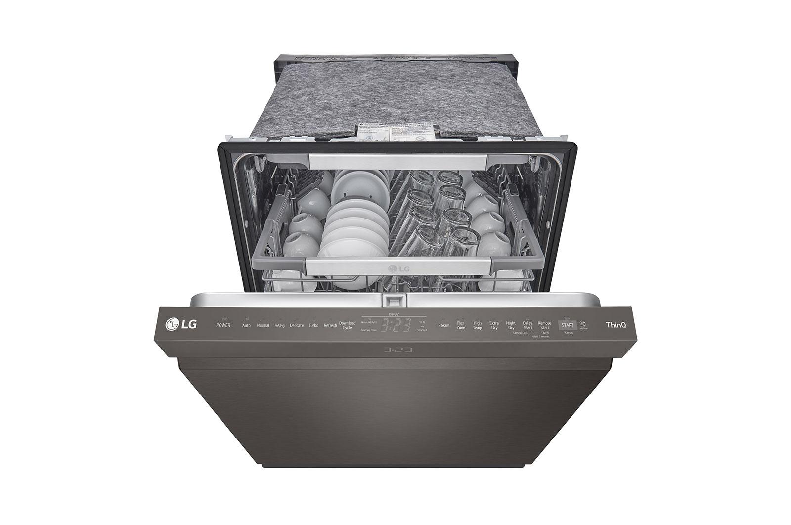 Clean Your Toughest Jobs Like A ProQuadwash® Pro And Truesteam® Tackle Caked-On Food For Enhanced Cleaning Performance And Sanitization. Plus, Get Drier Dishes With Fewer Water Spots Thanks To Dynamic Dry™ Enhanced With Truesteam®. Keep An Eye On The ClockConveniently Manage Your Time With A Hidden Led Display That Counts Down The Remaining Cycle Time. When The Dishwasher Is Not In Use, The Display Disappears For A Sleek Look. Make Room For Last-Minute ItemsUse The Handy Slider To Adjust The 3Rd Rack Height-Even When Fully Loaded-To Make Room For Taller Items At The Last Minute. Not Only Can You Save Time And Wash Fewer Loads, It'S Also A Convenient Spot For Hard-To-Fit Items Like Flatware, Long-Handled Utensils Or Small Espresso Cups. More Flexibility Means No Dish Gets Left BehindEasyrack® Plus Lets You Fit More Dishes, Run Fewer Loads And Make Short Work Of After-Dinner Cleanup. With Three Height Settings, The Upper Rack Adjusts Effortlessly And Smoothly To Make Room For Tall Stemware On Top Or Oversize Pans Below. Customizable Tines Offer Greater Flexibility For Loading Dishes Of All Shapes And Sizes Without Compromising Cleaning Performance. Resists Smudges For An Effortless ShineLg'S Printproof® Finish Resists Fingerprints And Smudges To Keep Your Kitchen Looking Its Best. Available In Black And Classic Stainless Steel, Now You Can Have All Of The Things You Love About Stainless Steel Appliances-The Premium Look, The Professional-Grade Durability-Without The Need For Special Cleaners Or Constant Attention. Plus, It Easily Wipes Clean With A Soft, Dry Cloth. Life'S Better When Your Home Runs SmartDiscover Thinq Care Within The Thinq App - Proactive Smart Alerts To Keep Your Appliances Running Smoothly. Get Notifications About Usage, Maintenance, Plus Early Diagnosis Right On Your Smartphone.* Dimensions & Capacity