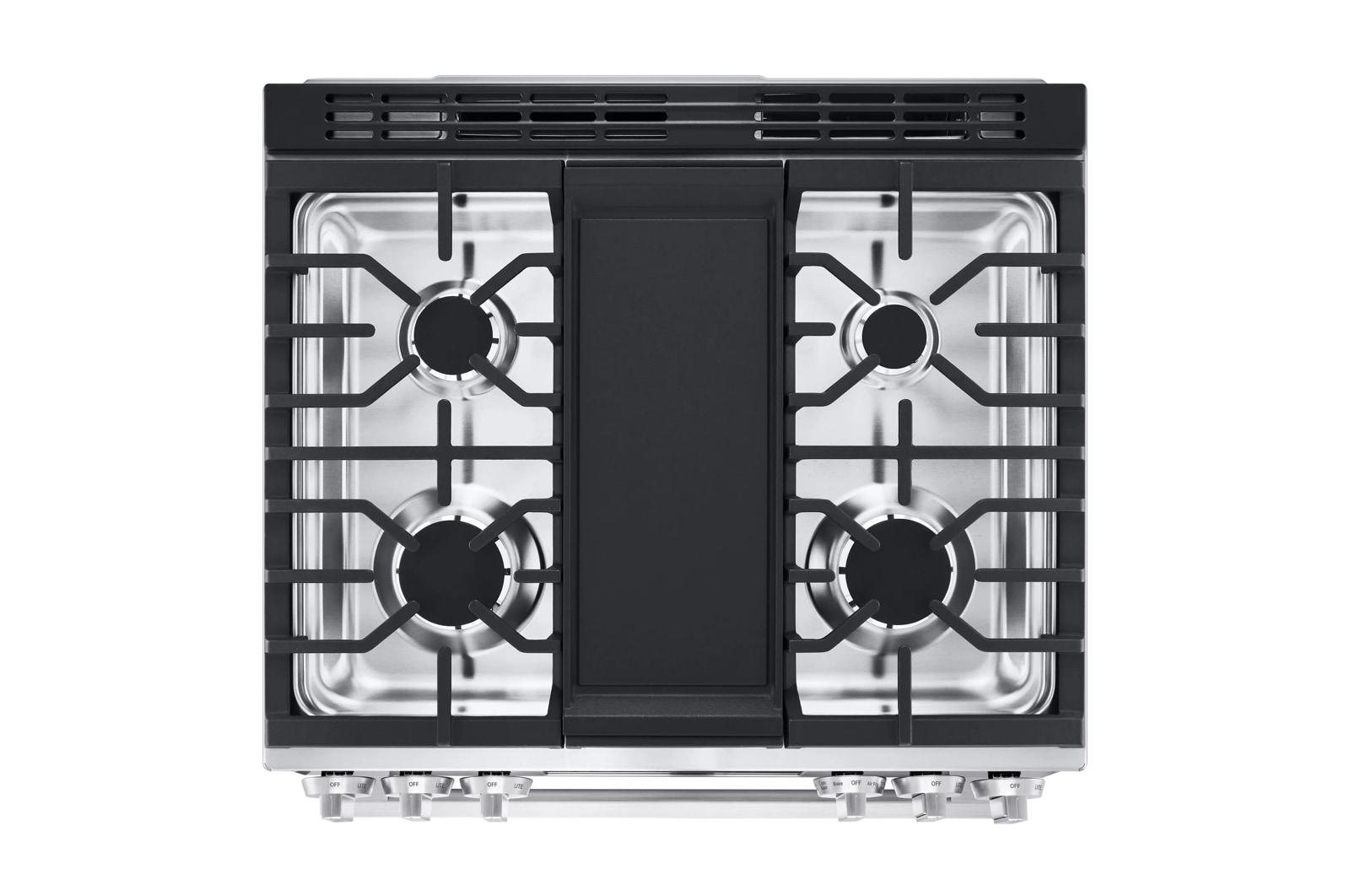 - The wide grate design of this LG gas range has room to use for pans of all shapes and sizes