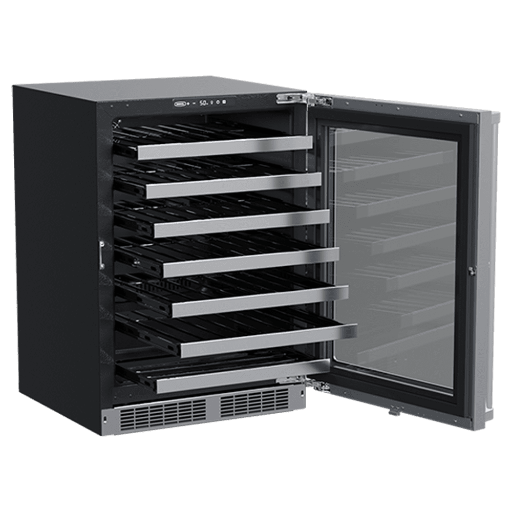 This 48-Bottle Model Is Engineered For The Optimum Wine Preservation Environment. Artfully Showcase Your Wine On Smooth Glide Racks Complemented By Sleek Stainless Steel Accents And A Midnight Black Backdrop. Gorgeous Theater-Style Interior Lighting Will Make Your Collection A Sight To Behold.