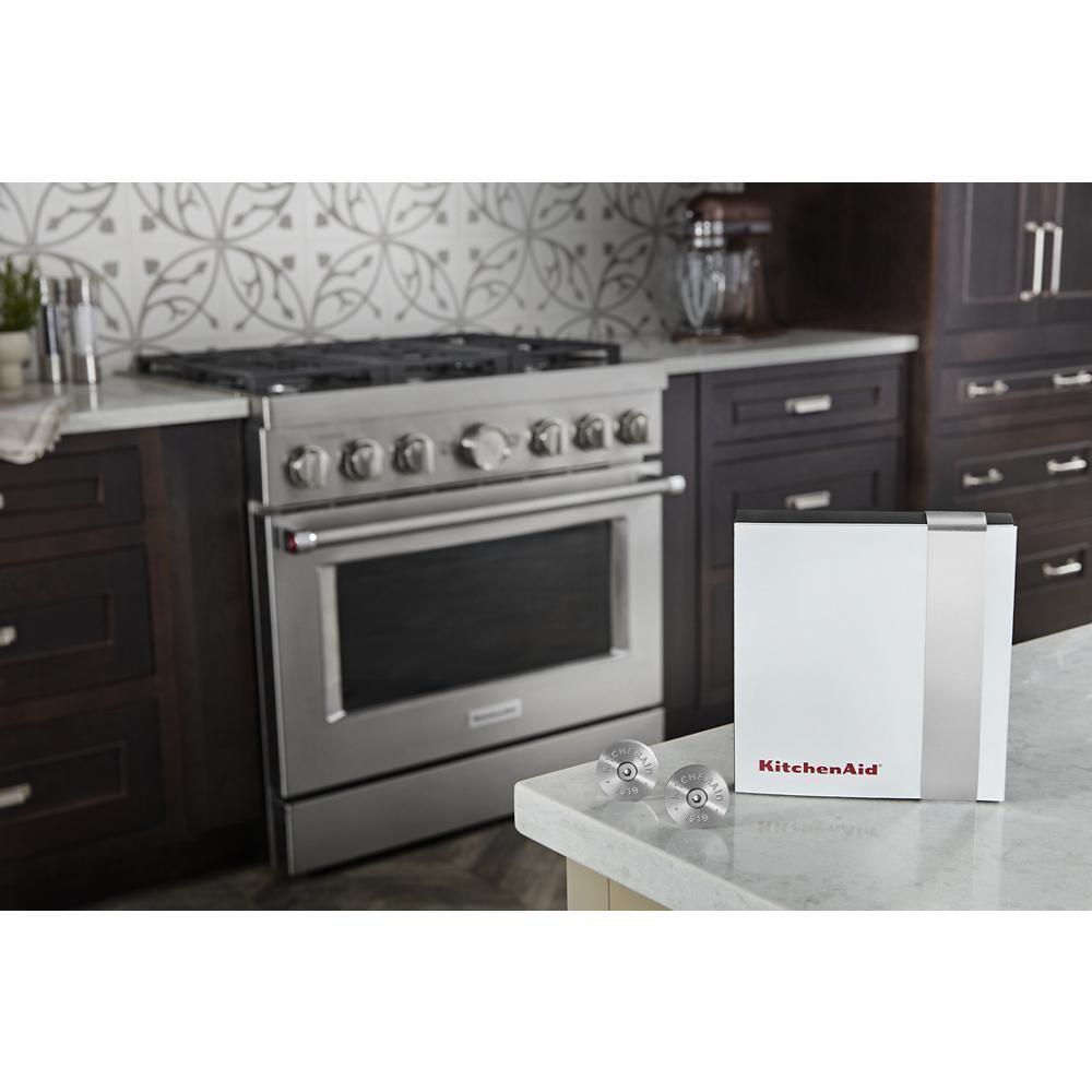 This Kitchenaid® Commercial-Style Range Handle Medallion Kit, Silver Lets You Change The Color Of Your Handle Medallions To Add A Custom Accent. The Kit Includes 2 Silver Medallions And A 1/8" Hex Allen Wrench For Easy Replacement. Order One Medallion Kit Per Range Handle. Installation Of These Handle Medallions Requires Basic Hand Tools And Novice Repair Experience.
