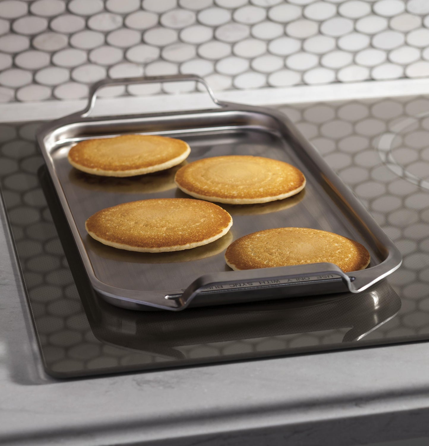 Control two 7" elements simultaneously to evenly heat large cookware or the included griddle