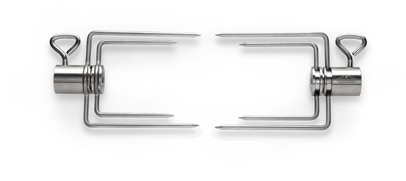 Using A Rotisserie To Create Meals On The Barbecue Is Easy And Delicious, But Sometimes You Need A Little Extra Help. This Set Of Two Rotisserie Forks Is Happy To Help. Featuring Four Prongs For Easy Gripping Of Food Without Damage And A Collapsable Design For Easy Storage, You Won'T Know What You Did Before You Had These Extra Hands. The Food0-Grade Stainless Steel Is Dishwasher Safe And They Are Universal, Fitting Both Square And Hexagonal Spit Rods Easily.