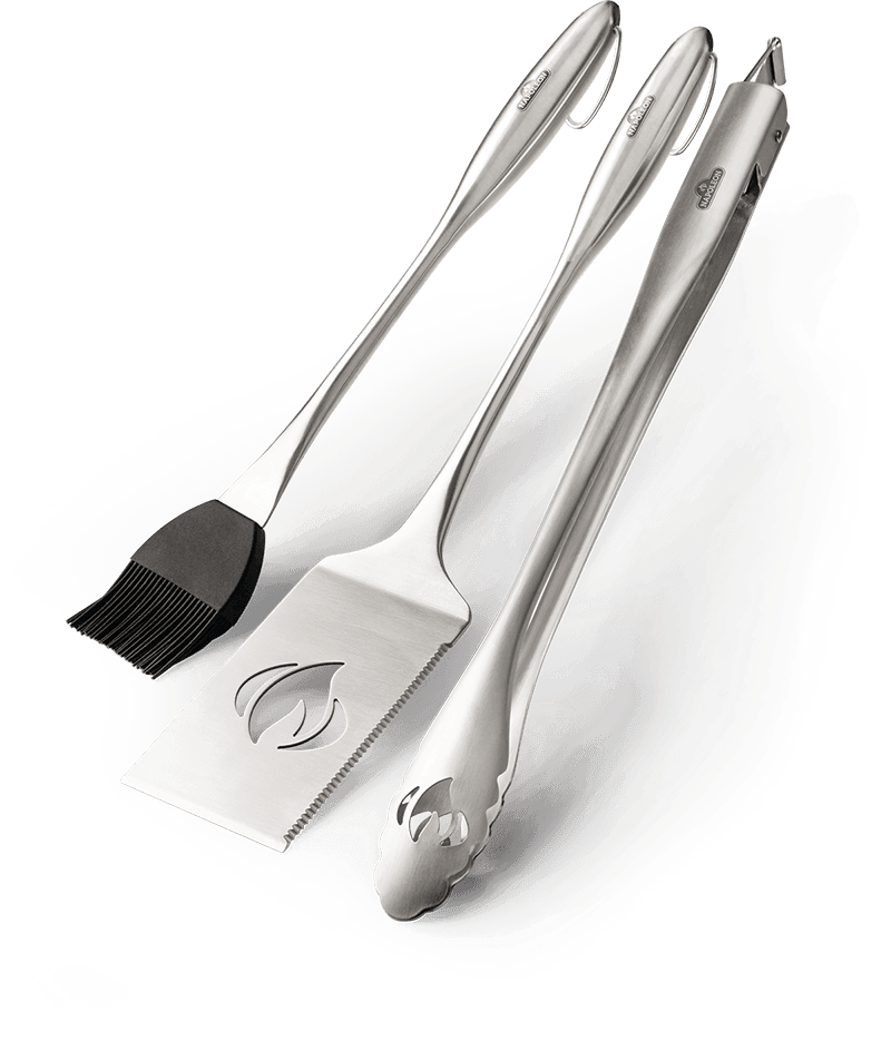 Elegant And Easy To Use Napoleon'S Pro Stainless Steel 3 Piece Toolset Has Everything You Need To Master Your Next Barbecue. The Curved Handles Sit Lightly And Comfortably In Hand While You Grill Up A Feast. Easily Hang Your Pro Stainless Steel 3 Piece Toolset With The Oversized Loops For Storage On Your Grill'S Tool Hooks. The Spatula Features An Extra Long Face, Bladed Tip, And Serrated Edge For Easy Moving And Flipping. The Tongs Are Sturdy, Easily Locking And Unlocking So You'Re Always Ready For Bbq Action. The Silicone Basting Brush Lets You Safely Slather On The Sauce, And Cleanup Is A Breeze Because It'S Dishwasher Safe.