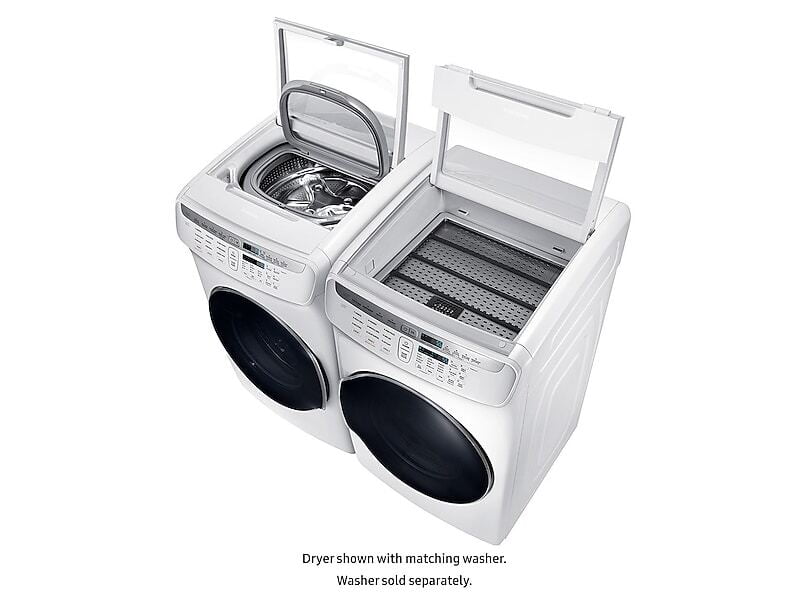 Flexdry™ One Machine. Two Dryers.Two Dryers In One Lets You Dry Delicates And Everyday Garments At The Same Time, Or Independently. By Combining A Conventional Large Capacity Dryer With A Delicate Dryer, You Can Dry Everyday Clothes And Delicates That Need Gentle Care To Keep Your Items In Great Condition. Gentle Care For DelicatesFlat Dry Delicates, Sweaters, And Accessories To Prevent Items From Shrinking And Fabric Damage. Unlike Conventional Dryers, The Delicate Dryer Does Not Tumble. Energy Star ® CertifiedEnergy Star ® Certified, So You Can Save Money By Conserving Energy. Independently Evaluated Against Strict Specifications And Is Proven To Save Energy Without Sacrificing Performance Or Functionality. Multi Steam TechnologyUses The Power Of Steam To Keep Clothes Looking And Smelling Great. Multisteam™ Technology Freshens And Sanitizes Garments, Reduces Odors And Static, And Relaxes Wrinkles In Clothes, So They Need Less Ironing. Smartthings App EnabledNow You Can Take Care Of Laundry Day From The Comfort Of Your Couch. Control Your Washer/Dryer With Voice Commands From Bixby, Alexa And Google Assistant. Wi-Fi Connectivity, Allows You To Remotely Start Or Stop Your Cycle, Schedule Laundry On Your Time, Receive End Of Cycle Alerts, And More Right From Your Smartphone With The Smartthings App*. Stainless Steel DrumMore Durable And Prevents Scratches Or Nicks From Metal Zippers. Eco DryUses Up To 25% Less Energy For Every Load, Offering Superior Drying Power While Saving Money In The Long Run. Sensor DryMake Sure Your Clothes Are Properly Dry Without Constantly Checking. Sensor Dry Automatically Optimizes The Time And Temperature Of The Drying Cycle So Clothes Are Always Thoroughly Dry Without Being Damaged. Moisture Sensors Protect Your Laundry From Heat Damage And Avoid Excessive Energy Use. Smart CareTroubleshoot Straight From Your Smartphone. Smart Care Interacts With Your Washer And Dryer To Perform An Immediate Diagnosis And Offer Quick Solutions. Convenient LightEmpty Your Dryer Easily And Never Misplace Another Sock! An Internal Drum Light Brightly Illuminates Your Laundry And The Rest Of The Interior So You Can Quickly And Safely Check Your Dryer'S Contents. Now You Won'T Overlook Even The Smallest Item In The Dark. Cleaner, Safer VentsThe Vent Sensor Continually Monitors The Air Duct To Ensure It'S Operating Safely And Efficiently. It Also Automatically Notifies You When It'S Time For A Clean Or Quickly Prompts You To Check For Possible Obstructions. Reversible DoorThis Samsung Dryer Features A Reversible Door For Maximum Convenience. Easily Change Which Direction The Door Opens To Accommodate Your Laundry Space. Perfect PairSamsung Washers And Dryers Team Up To Make Light Work Of Laundry Day, While Looking Great In Your Laundry Room.