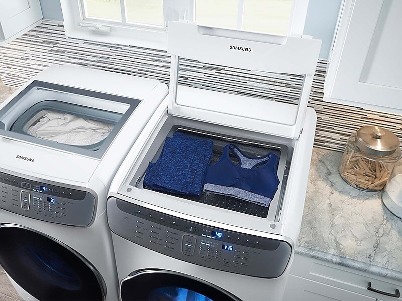 Perfect PairSamsung Washers And Dryers Team Up To Make Light Work Of Laundry Day, While Looking Great In Your Laundry Room. Flexdry™ One Machine. Two Dryers.Two Dryers In One Lets You Dry Delicates And Everyday Garments At The Same Time, Or Independently. By Combining A Conventional Large Capacity Dryer With A Delicate Dryer, You Can Dry Everyday Clothes And Delicates That Need Gentle Care To Keep Your Items In Great Condition. Gentle Care For DelicatesStandstill Delicate Rack Lets You Dry Undergarments, Sweaters, And Accessories To Prevent Shrinkage And Fabric Damage Energy Star ® CertifiedEnergy Star ® Certified, So You Can Save Money By Conserving Energy. Independently Evaluated Against Strict Specifications And Is Proven To Save Energy Without Sacrificing Performance Or Functionality. Multi Steam TechnologyUses The Power Of Steam To Keep Clothes Looking And Smelling Great. Multisteam™ Technology Freshens And Sanitizes Garments, Reduces Odors And Static, And Relaxes Wrinkles In Clothes, So They Need Less Ironing. Smartthings App EnabledNow You Can Take Care Of Laundry Day From The Comfort Of Your Couch. Control Your Washer/Dryer With Voice Commands From Bixby, Alexa And Google Assistant. Wi-Fi Connectivity, Allows You To Remotely Start Or Stop Your Cycle, Schedule Laundry On Your Time, Receive End Of Cycle Alerts, And More Right From Your Smartphone With The Smartthings App*. Stainless Steel DrumMore Durable And Prevents Scratches Or Nicks From Metal Zippers. Eco DryUses Up To 25% Less Energy For Every Load, Offering Superior Drying Power While Saving Money In The Long Run. Sensor DryMake Sure Your Clothes Are Properly Dry Without Constantly Checking. Sensor Dry Automatically Optimizes The Time And Temperature Of The Drying Cycle So Clothes Are Always Thoroughly Dry Without Being Damaged. Moisture Sensors Protect Your Laundry From Heat Damage And Avoid Excessive Energy Use. Smart CareTroubleshoot Straight From Your Smartphone. Smart Care Interacts With Your Washer And Dryer To Perform An Immediate Diagnosis And Offer Quick Solutions. Convenient LightEmpty Your Dryer Much More Easily - And Never Misplace Another Sock! An Internal Drum Light Brightly Illuminates Your Laundry And The Rest Of The Drum. So You Can Quickly And Safely Check The Contents And Make Sure You Get Everything Out.Now You Won'T Overlook Even The Smallest Item In The Dark. Cleaner, Safer VentsThe Vent Sensor Continually Monitors The Air Duct To Ensure It'S Operating Safely And Efficiently. It Also Automatically Notifies You When It'S Time For A Clean Or Quickly Prompts You To Check For Possible Obstructions. Reversible DoorThis Samsung Dryer Features A Reversible Door For Maximum Convenience. Easily Change Which Direction The Door Opens To Accommodate Your Laundry Space.