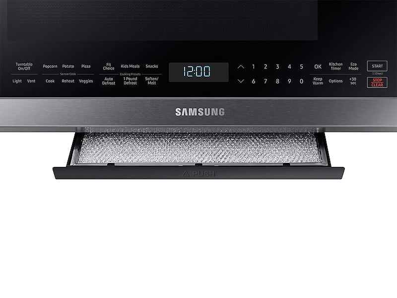 See things more clearly on the new Samsung over-the-range. With a large LED display, settings and timing are clearly visible for greater cooking convenience. The digital display's striking ice blue color provides a stylish accent to enhance any kitchen interior.
