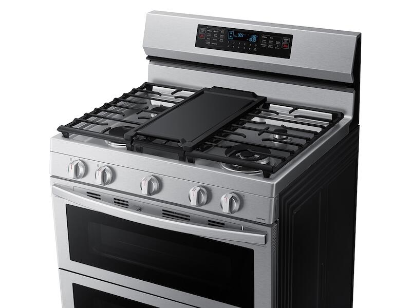 - Cook two dishes at different temperatures with Samsung's Flex Duo™ Freestanding Gas Range. Use the full oven for a large roast or split it into two smaller ovens that can cook at different temperatures. Our stainless steel design completely covers all cooktop and backguard surfaces. Upgraded technology makes cooking simple and fun.