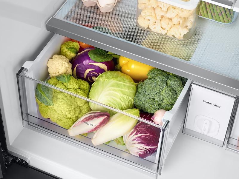 - Extra-large capacity 4-Door French Door Refrigerator with customizable and changeable door panels available in a variety of colors and finishes. Reinvent water and ice the way you want it with Samsung's AutoFill Water Pitcher and Dual Ice Maker with cubed ice and Ice Bites™.