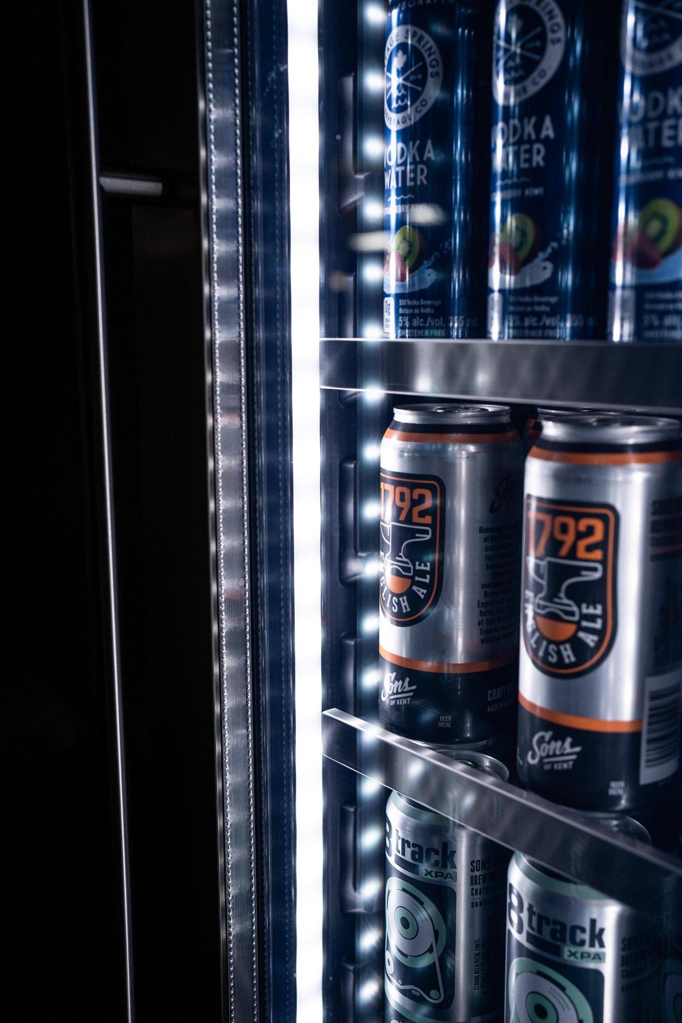 - Built-in beverage center stores up to 7 bottles of wine and up to 66 - 355 mL cans