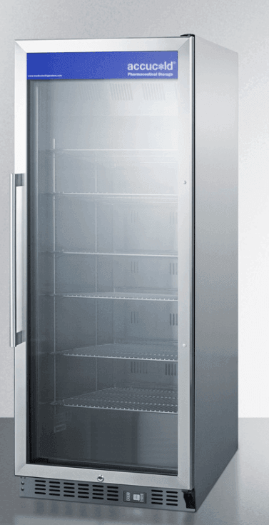 Accucold By Summit Appliance Carries A Quality Line Of Pharmaceutical Refrigeration For Temperature-Safe Storage Of Sensitive Material. The Acr1151 Is Conveniently Sized With A 24" Footprint For Space-Challenged Facilities, With A Front-Breathing System That Allows Built-In Or Freestanding Use. The Exterior And Interior Are Constructed From Stainless Steel For Easier Cleaning And Improved Sanitation. The Glass Door Provides A Full View Of The 11 Cu.Ft. Interior While Adding Protection With The Self-Closing Design. A Factory Installed Lock Offers Added Security. A Hospital Grade Cord With A 'Green Dot' Plug Offers Added Safety In High Traffic Facilities. Inside, The Acr1151 Includes Six Cantilevered Chrome Shelves That Can Easily Be Rearranged To Accommodate A Variety Of Sizes. Fan-Forced Cooling Ensures Cold Air Is Evenly Distributed Throughout The Interior. This Model Uses Frost-Free Operation For Easy User Maintenance, With An Audible Open Door Alarm That Will Sound If The Door Is Ajar For Over 60 Seconds. A Digital Thermostat Offers Intuitive Temperature Control That Can Be Viewable In Celsius Or Fahrenheit. Designed For Optimum Pharmaceutical Storage, The Temperature Range Is 2C To 8C. Note: Due To The Self-Closing Design Of The Door, This Unit Is Currently Only Available With A Right Hand Door Swing. Features Commercially Approved Etl-S Listed To Ansi-Nsf Standard 7 And Meets Ul-471 Frost-Free No-Frost Operation Ensures Minimum User Maintenance Glass Door Tempered Glass Door With Stainless Steel Trim Provides Heat-Safe View Of Interior Contents Factory Installed Lock Keyed Lock For A Secure Interior Fan-Cooled Interior Internal Fan Ensures The Interior Is Evenly Cooled From Top To Bottom F/C Display Temperature Set Point Can Be Viewed In Celsius Or Fahrenheit At The Touch Of A Button Temperature Memory Function Unit Will Retain Its Last Settings When Power Is Restored In The Event Of Power Loss Professional Handle Stainless Steel Handle Adds A Professional Touch Stainless Steel Interior And Exterior Finish Cabinet And Interior Walls Are Constructed From Stainless Steel Self-Closing Door Door Will Automatically Close When Left Ajar, Preventing Items From Accidentally Being Exposed To Ambient Temperatures Recessed Led Lighting Energy Efficient Lighting Offers Full View Of Interior Adjustable Cantilevered Shelves Adjustable Shelving Accommodates Virtually Any Size With Convenient Cantilevered System Operates Between 2 And 8C Designed To Maintain Temperatures As Recommended By The Cdc Open Door Alarm Audible Alarm Will Sound If The Door Is Left Ajar For Over A Minute Sealed Back Space Saving Design With Easier Cleanability Built-In Capable Front-Breathing System Allows The Unit To Be Used Built-In With 1/4" Of Clearance Around The Sides And 2" At The Rear 100% Cfc Free Environmentally Friendly Design With No Ozone-Damaging Chemicals Specifications Overview Height Of Cabinet 58.38" (148 Cm) Width 23.63" (60 Cm) Depth 22.88" (58 Cm) Depth With Handle 24.0" (61 Cm) Depth With Door At 90 45.0" (114 Cm) Capacity 11.0 Cu.Ft. (311 L) Defrost Type Frost-Free Door Glass Cabinet Stainless Steel Us Electrical Safety Etl Canadian Electrical Safety Etl-C Sanitation Etl-S Amps 1.7 Voltage/Frequency 115 V Ac/60 Hz Weight 141.0 Lbs. (64 Kg) Shipping Weight 160.0 Lbs. (73 Kg) Parts & Labor Warranty 1 Year Compressor Warranty 5 Years Refrigerator Features Door Swing Rhd Reversible No Shelf Type Chrome Shelf Qty 6 Adjustable Shelves Yes Thermostat Type Digital Fan Type Interior And Exterior Refrige