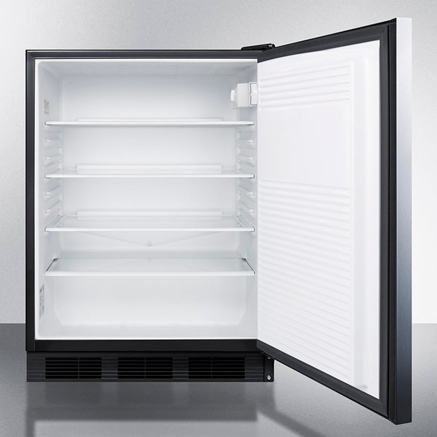 Accucold By Summit Appliance Offers A Wide Range Of All-Refrigerators For General Purpose Storage. The Al750Bi Series Features 24" Wide All-Refrigerators Designed For Built-In Installation Under Lower Ada Compliant Counters. The Al752Bkbisshh Is A 32" High All-Refrigerator With A Full 5.5 Cu.Ft. Capacity Inside A Slim 24" Footprint. The Front-Breathing Design Allows Built-In Use Under Counters, While The Fully Finished Cabinet Also Lets This Unit Be Used Freestanding. This Model Has A Black Cabinet And User-Reversible Stainless Steel Wrapped Door. A Thin Handle With A 14Mm Diameter Is Mounted Horizontally For A Sleek, Modern Look Inside, The Al752Bkbisshh Utilizes Low Maintenance Automatic Defrost Operation. Our Unique "Hidden" Evaporator Is Set Behind The Rear Wall To Create A Seamless, Easy-To-Clean Interior That Also Maximizes Shelf Space. This Unit Has A Flat Door Liner That Allows It To Accept Larger Trays (Up To 19 1/2" X 16"). Adjustable Glass Shelves Allow Users To Reconfigure The Interior To Accommodate A Variety Of Sizes. The Interior Light Is Controlled By An On/Off Rocker Switch Located Behind The Thermostat Dial. For More Finish Options, Browse The Entire Al750Bi Series. Note: This Product Is Intended For A Wide Variety Of Basic Storage Applications. Storage Of High-Value Vaccines, Life Science Materials, And Medical/Clinical Biologicals Require A Product Offering Tighter Temperature Control And/Or Alarms, Monitoring, And Backup. For More Information, Browse Accucold'S Purpose-Built Line Or Contact Our Product Specialists At 1-888-4-Med-Lab.