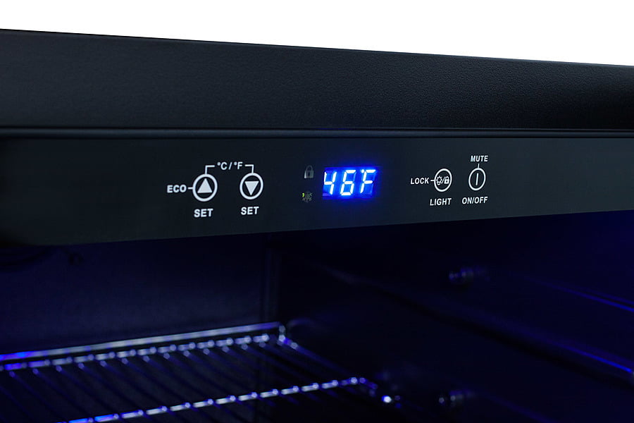 - Double pane tempered glass door : Provides a full display of the interior, with two levels of glass for added protection