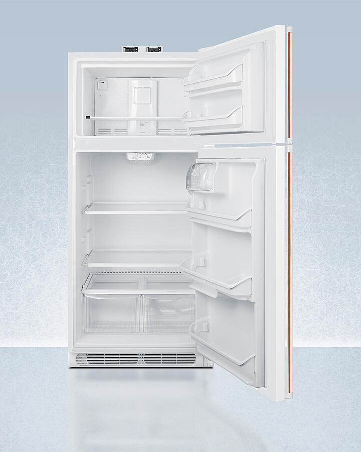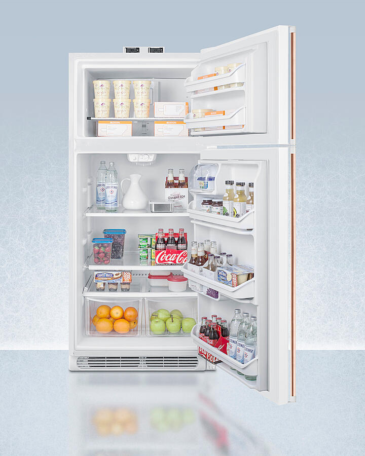 Summit BKRF18WCP 18 Cu.Ft. Break Room Refrigerator-Freezer In White With Pure Copper Handles And Nist Calibrated Alarm/Thermometers