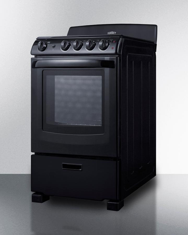 Summit Brings Outstanding Value To Small Kitchens With Fully Featured Electric Ranges In 24" Wide Fits. Made In North America, The Re2413B Is A 240V Electric Range Designed For 24" Wide Spaces. One 8" And Three 6" Coil Burners Include Removable Chrome Drip Pans For Easy Cleaning. For Added Safety, Each Coil Is Equipped With A Sensor That Will Automatically Cycle The Element Off If It Reaches Dangerous Flashpoint Temperatures. Heating Will Resume Automatically. All Cooking Controls Are Located Upfront On Push-To-Turn Knobs For Safe And Easy Use. Indicator Lights Illuminate When The Burners And Oven Are On. The Re2413B Features A Large Oven Window With An Interior Light To Make It Easy For Users To Monitor Their Cooking. Inside, The 2.9 Cu.Ft. Interior Is Made From Durable Porcelain And Includes Two Adjustable Racks. The Waist-High Broiler Is Conveniently Located Inside, Letting You Finish Your Cooking Without Transferring Contents To An Inconvenient Drop-Down Compartment On The Floor. The Unit'S Lower Compartment Is A Slide-Out Storage Drawer For Added Convenience. The Re2413B Comes With A Jet-Black Exterior Door, Handle, And Knobs For A Contemporary Kitchen Design. With Its Slim Fit And User-Friendly Features, This Unit Is The Ideal Choice For Space-Challenged Kitchens On A Budget. For This Unit In A 20" Width See Model Re2031B. For This Unit In White And Stainless Steel See Models Re2411W And Proel24Ss. Summit Also Manufactures Smooth-Top Ranges And Gas Units. Browse Our Website To Explore The Complete Cooking Collection.