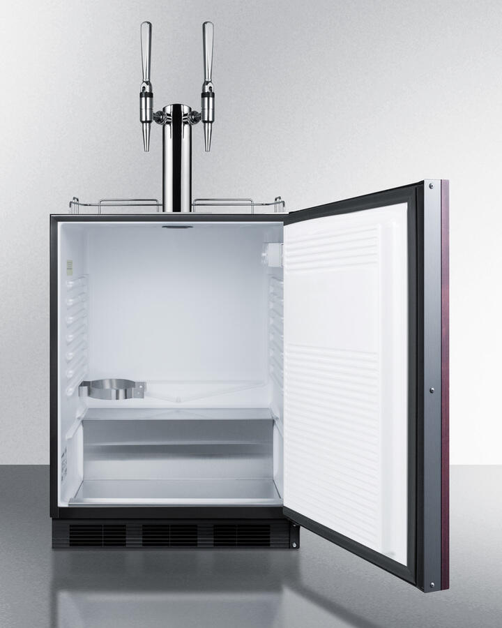 32 Inch Height Fits Under Lower Ada Compliant Counters Commercial Grade Dual Style Tap Kit Includes Everything You Need To Serve Creamy Nitro-Infused Coffee On Draft Commercially Listed To Nsf-7 Standards Flexible Design Allows Built-In Or Freestanding Use In 24" Spaces Customizable Door Front Accepts Full Overlay Panels For A Seamless Look That Can Blend Into Cabinetry Made In Europe Summit Commercial Brings Unique Appliance Choices To Ada Compliant Settings With A New Line Of Commercial Coffee Dispensers Made In Europe. Sized At 32 Inches High, The Sbc58Bbiifncftwinada Is Designed To Fit Under Lower Ada Compliant Counters. The Front-Breathing Design Allows Built-In Installation, While The Fully Finished Black Cabinet Also Enables Freestanding Use. This Unit Features An Integrated Stainless Steel Door Frame Designed To Accept Overlay Panels, Allowing You To Create A Custom Look That Blends Into Your Cabinetry. We Include A Guard Rail (Ships Uninstalled) And Removable Two-Piece Stainless Steel Drip Tray For Cleaner Service. This Unit Ships With An Nsf-Listed Stainless Steel Tap Kit That Includes Everything You Need To Serve Nitro-Infused Cold Brew Coffee, Including A Standard Dual Tap Draft Tower, Regulator, And Nitrogen Tank. Inside, The Sbc58Bbiifncftwinada Is Designed To Hold Two 1/6 (Sixtel) Kegs Or One Tall Quarter Keg (Note: Interior Does Not Accommodate A Standard Half Barrel). Automatic Defrost Ensures Easy User Maintenance, With A Seamless Interior For Easier Cleaning. The Stainless Steel Floor Offers Added Durability When Loading Kegs. This Unit Includes An Interior Light With An On/Off Rocker Switch And A Dial Thermostat For Easy And Intuitive Temperature Management. The Nitrogen Tank Bracket Is Located Inside, Allowing You To Keep The Tank Inside And Save On Exterior Depth. The Sbc58Bbiifncftwinada Is Etl-S Listed To Nsf-7 Commercial Standards. Additional Ada Compliant Kegerator Choices Are Available With Stainless Steel Or Glass Doors. Browse Our Complete Line For More Choices.
