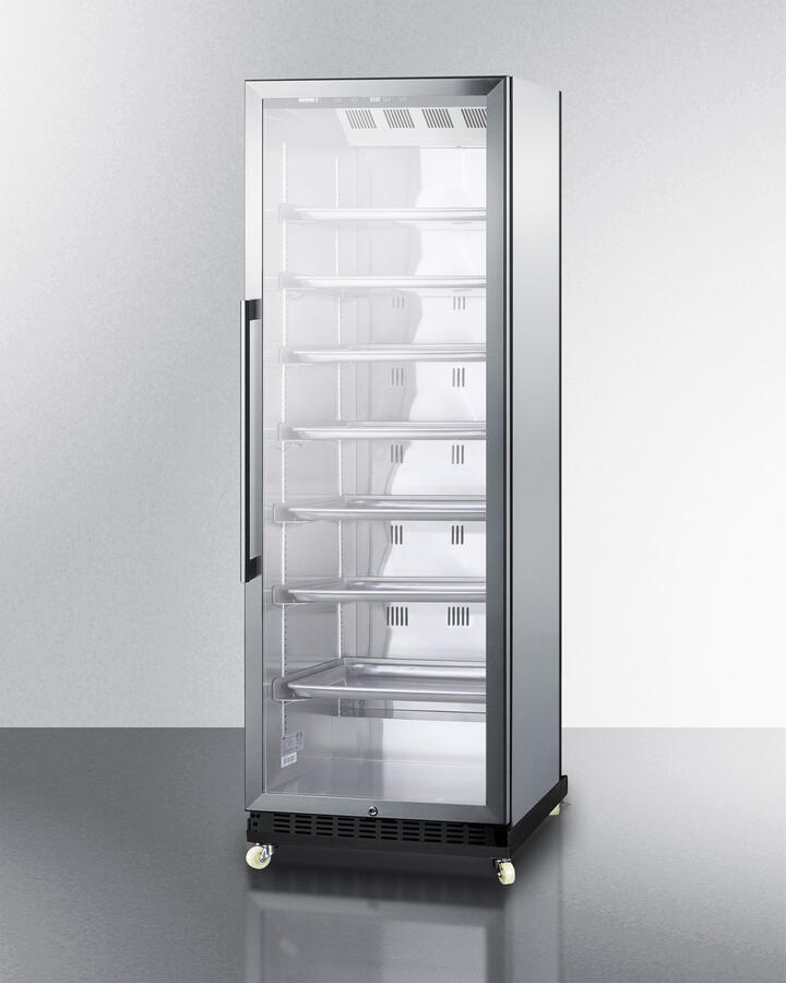 Commercially Approved To Nsf-7 Standards Reach-In Design Ensures Easy Access To Interior Contents Adjustable Half-Sheet Pans And Chrome Shelves Provide Optimal Storage Flexibility������ Factory-Installed Dolly Provides Easy Portability For Added Convenience Stainless Steel Interior Offers Added Durability And Improved Sanitation Uniquely Sized With A Slim 24 Inch Footprint Digital Thermostat Offers Precise And Convenient Temperature Control Recessed Led Lighting Offers Attractive Presentation Of Stored Products True Frost-Free Operation Saves On Maintenance By Preventing Icy Buildup Self-Closing Door Is Ideal For Busy Commercial Settings Summit Commercial's Line Of Mini Reach-In Refrigerators Brings Versatile Convenience To New Dining Setups, With Stainless Steel Construction For Lasting Durability And Factory-Installed Dollys To Ensure Easy Portability. The Scr1401Ricss Is An Upright Beverage Center Conveniently Sized With A Slim 24-Inch Footprint. The Stainless Steel Trimmed Glass Door Provides A Full View Of Storage Down To The Floor, With Recessed Led Lighting To Ensure An Attractive And Efficient Presentation. The Door Comes In A Right-Hand Door Swing And Features A Self-Closing Design To Help Protect Stored Items In Commercial Settings Where Customers May Not Take The Time To Ensure A Tight Seal. This Unit Comes Pre-Installed On A Dolly With Four 3" Casters For Easy Mobility, Perfect For Restaurants And Bars. The Dolly Can Also Be Removed And Reattached As Needed. A Factory-Installed Lock Offers Additional Security. This Unit Has A Fully Finished Stainless Steel Cabinet And Is Designed For Freestanding Indoor Use. Inside, The Scr1401Ricss Utilizes Frost-Free Operation For Minimum User Maintenance. The Interior Walls Are Made From Stainless Steel For Improved Durability And Sanitation. Its Reach-In Design Allows Convenient User Access To The Interior, With Seven Adjustable U-Shaped Steel Tray Holders That Can Be Rearranged On Cantilevered Clips To Accommodate A Variety Of Sizes. This Unit Comes With Seven Aluminum Half-Sheet Pans, Ideal For Storing Beverages And Other Sealed Items. Seven Chrome Shelves Are Also Included For User Convenience. The Digital Control Panel Is Conveniently Located Towards The Top, Allowing Staff To Adjust The Temperature Without Bending To The Floor. The Readout Can Be Viewed In Celsius Or Fahrenheit. Additional Features Include An Audible High Temperature Alarm, Open Door Alarm, Temperature Memory Function, And Sabbath Mode Setting. The Scr1401Ricss Is Etl-S Listed To Nsf-7 For Use In Commercial Settings. Its Reach-In Design Makes It A Great Choice For Bringing Flexible, Portable, And Convenient Beverage Storage To Commercial Settings. This Unit Is Also Available With A Left-Hand Door Swing (Scr1401Lhricss). Visit Our Website To See Our Complete Line Of Reach-In Refrigerators.
