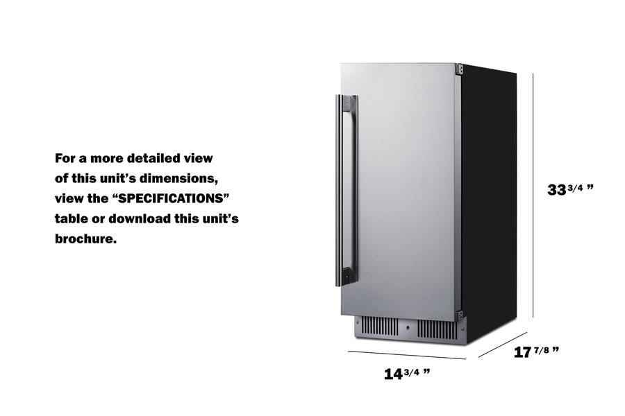 Summit'S Shallow-Depth Series Of Built-In Undercounter Refrigeration Brings Full Functionality To Kitchen Islands, Wet Bars, And Other Settings With Space Limitations. The Sdhr1534 Is A 15" Wide All-Refrigerator Sized Under 18" Deep. It Comes In A 34" Height To Fit Standard Counter Spaces. The Front-Breathing System Allows Built-In Installation, While The Fully Finished Black Cabinet Also Allows Freestanding Use. It Features A User-Reversible Stainless Steel Wrapped Door With A Fully Articulating European Hinge For Smoother Openings And Pro Style Handle To Complete The Look. This Unit Has A Sealed Rear And Right Angle Cord For A Better Fit. A Lock Is Located In The Kickplate For Added Convenience And Security. Inside, The Unit Features Stainless Steel Construction For Improved Durability And Sanitation. Fan-Forced Cooling Ensures Even Temperature Distribution And Fast Temperature Recovery. Recessed Led Lighting Offers An Attractive Yet Efficient Look. The Digital Thermostat Makes It Easy To Manage The Interior Temperature. This Unit Includes A Cantilevered Shelving System With Glass Shelves For Flexible Storage. Additional Features Include An Open Door Alarm, High-Temperature Alarm, And Sabbath Mode Setting That Lets You Disable Some Of The Electrical Elements During Observance Periods For Up To 96 Hours. The Sdhr1534 Is Etl-S Listed To Nsf-7 Commercial Standards But Can Also Be Used In The Home. With Its Deluxe Style, User-Friendly Features, And Uniquely Shallow Depth, This Unit Offers Premium Value For A Variety Of Settings. Alternative 18" Deep Choices Are Available In 15", 19", And 24" Widths, Including Outdoor Refrigerators, Refrigerator Drawers, And More. For A Panel-Ready Version, See Model Sdhr1534Pnr.