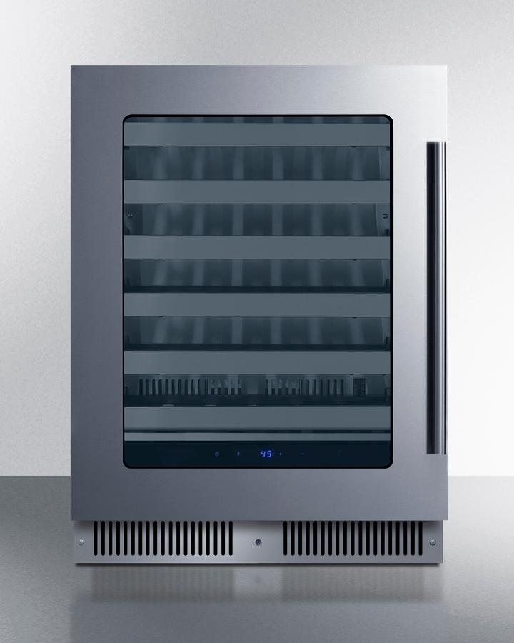 Summit'S Shallow-Depth Series Of Built-In Undercounter Refrigeration Brings Full Functionality To Kitchen Islands, Wet Bars, And Other Settings With Space Limitations. The Sdhw2442Lhd Is A 24" Wide Single-Zone Wine Cellar Sized At 18" Deep. It Comes In A 34" Height To Fit Standard Undercounter Spaces. The Front-Breathing System Allows Built-In Installation, While The Fully Finished Black Cabinet Also Allows Freestanding Use. Seamless Stainless Steel Trim Blends Smoothly Into The Double Pane Tempered Glass Door For An Elevated Look, With A Professional Stainless Steel Handle Included. This Unit Has A Sealed Rear And Right Angle Cord For A Better Fit. The Fully Articulating European Hinge Design Ensures Smoother Opening. A Lock Is Located In The Kickplate For Added Convenience And Security. This Model Comes With A Left-Hand Door Swing. For A Right-Hand Version, See Sdhw2442. The Inside Features Stainless Steel Construction For Improved Durability And Sanitation. White Led Lighting In The Side Walls Provides Elegant Display Conditions, With Dimmable Levels That Let You Create The Perfect Presentation. The Angled Digital Control Panel Enables You To Adjust The Temperature Between 41 And 68 F To Accommodate Red, White, Or Sparkling Wine Bottles. Our Uniquely Designed Steel Shelves In A Jet Black Finish Slide Out Smoothly, With Stainless Steel Front Trim To Complete The Classic Look. Fan-Forced Cooling Ensures Even Temperature Distribution And Fast Temperature Recovery. Additional Features Include An Open-Door Alarm, A High-Temperature Alarm, And A Sabbath Mode Setting That Turns Off Some Electrical Elements For Up To 96 Hours During Observances. The Sdhw2442Lhd Is Etl-S Listed To Nsf-7 Commercial Standards But Can Also Be Used In The Home. With Its Deluxe Style, User-Friendly Features, And Uniquely Shallow Depth, This Unit Offers Premium Value For A Variety Of Settings. Create A Matching Set By Pairing This With Our Sdhg2443 Beverage Center. Alternative 18" Deep Choices Are Available In 15", 19", And 24" Widths, Including Outdoor Refrigerators, Refrigerator Drawers, And More. For A Panel-Ready Version, See Model Sdhw2442Pnrlhd. Note: The Interior Can Store Up To 18 Bordeaux-Style Bottles. Due To The Shallow Depth Of This Unit, We Recommend Loading The Bottles With The Cork Facing The Rear For A Better Fit. Wider Burgundy Bottles Will Fit On Most Shelves, But As These May Vary More In Size, Loading Capacity Will Ultimately Depend On Your Specific Bottle. You May Also Remove Shelves To Accommodate Thicker Bottles, Such As Champagne And Sparkling Wine.