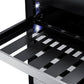 - Removable steel shelves in a black finish with stainless steel trim for an elegant but modern look