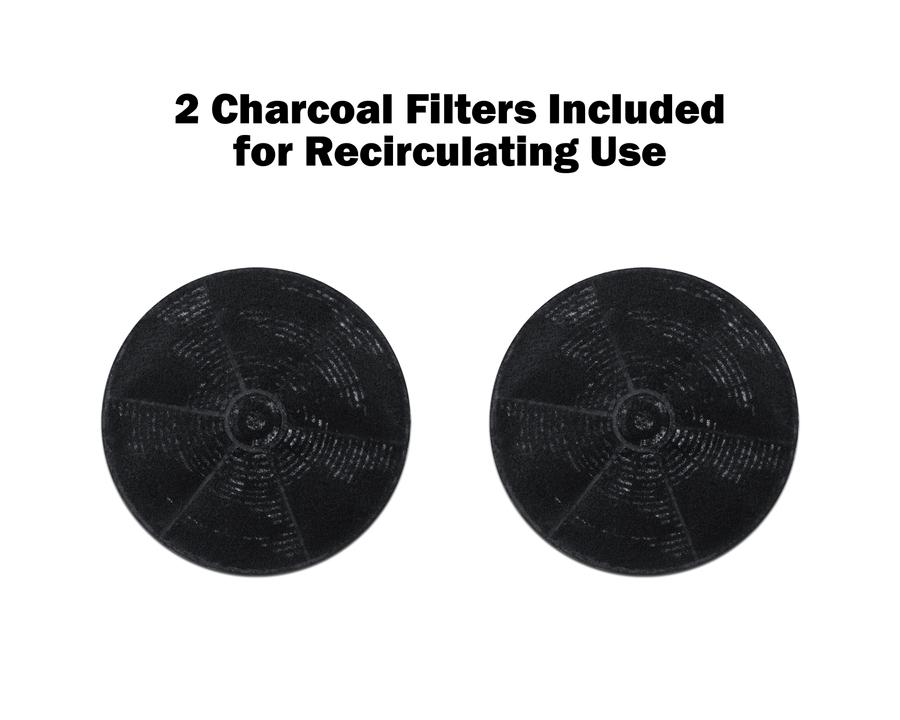 - Two round carbon filters attach to the blower to absorb grease and odors when using the hood in recirculating mode