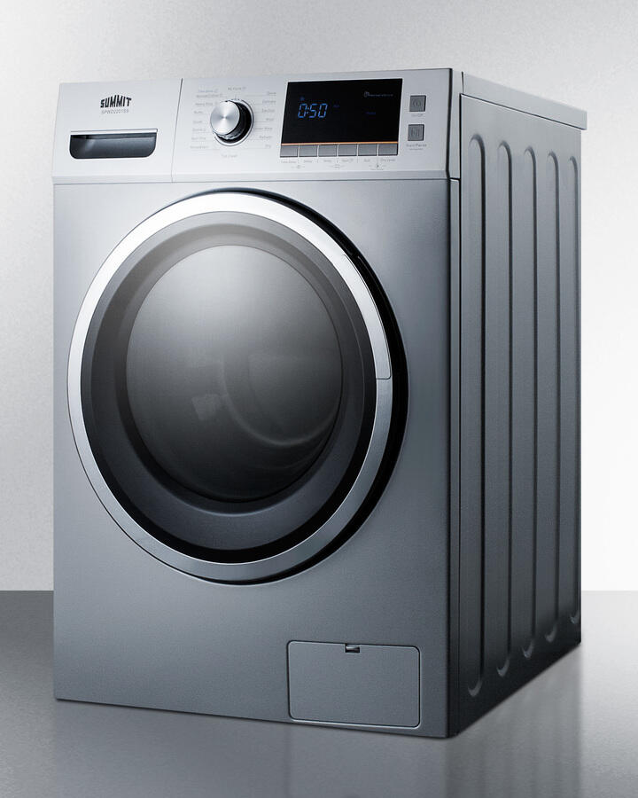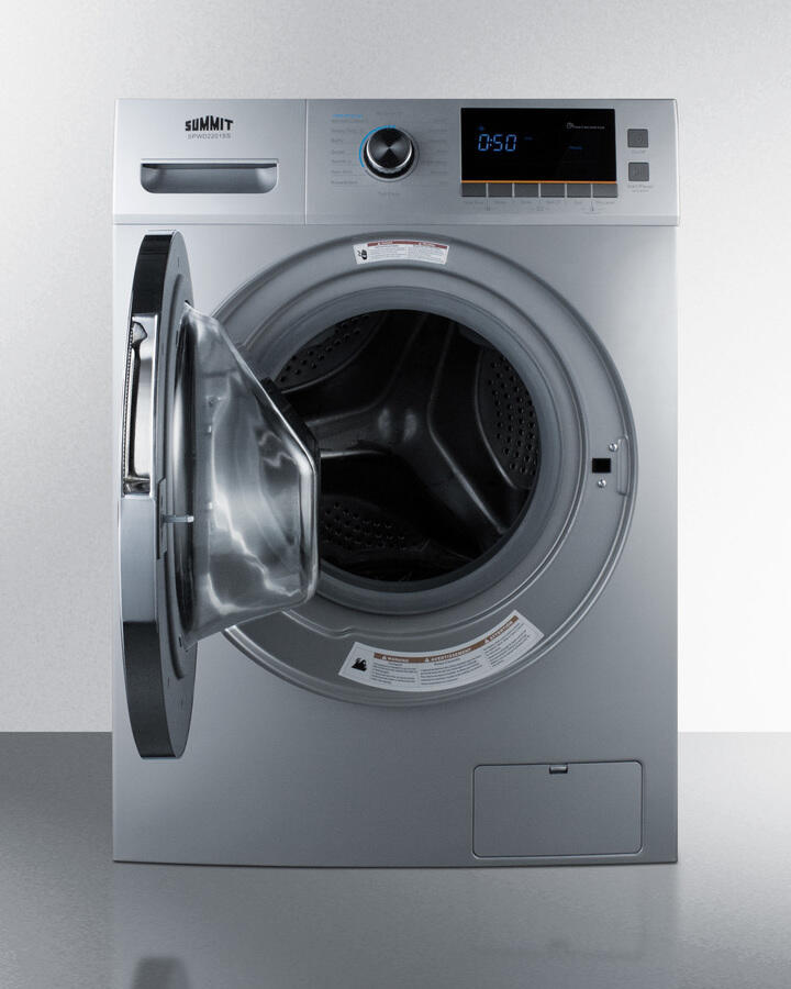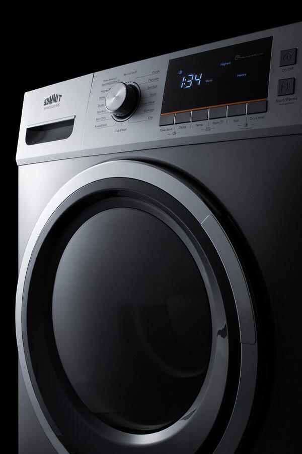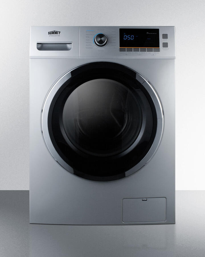 Full 15 Lb. Wash Capacity In A Slim-Fitting 24" Footprint������ Multiple Wash Cycles Allow You To Give The Proper Treatment To Specialized Fabric, Including Wool, Delicates, Sportswear, And Duvets Attractive Platinum Finish Brings A Unique Look To The Home Intuitive Controls With A Digital Display For Easy Use Stainless Steel Drum With Generous 2 Cu.Ft. Capacity Large Front-Opening Glass Door Making Loading Simple 110V Non-Vented Operation Summit Spwd2201Ss Is A 24" Wide Washer/Dryer Combo Designed To Maximize Laundry Capacity In An Easy Fit. This Non-Vented Condensing (Ductless) 115V Washer/Dryer Comes In An Attractive Platinum Finish. The Stainless Steel Drum Offers A Full 2 Cu.Ft. Capacity, Enabling The Unit To Wash Select Loads Of Up To 15.4 Lbs And Dry Up To 7.7 Lbs. The Front-Loading Design Features A Large, Easy-To-Open Glass Door And Pull-Out Dispenser For Detergent, Pre-Wash, And Fabric Softener. A Combination Digital And Dial Control Panel With A Large Lcd Readout Makes It Easy And Intuitive To Operate This Unit. 12 Wash Programs Ensure All Fabrics Can Get The Proper Treatment, With Specialized Settings For Duvets, Sportswear, Wool, Delicates, And Heavy Duty Loads. A "Sanitize" Cycle Allows The Washer To Use Higher Temperatures For Smaller Loads, While A "Quick" Setting Is Ideal For Washing Small Loads In Less Time. The Delay, Pause, And "Add Garment" Functions Allow More Flexibility In Washing. Five Spin Speeds Vary From 400 To 1200 Rpm To Allow The User To Select The Proper Setting Per Load. This Unit Offers The Choice Of Four Temperature Settings And Three Soil Levels, As Well As A Memory Function ("My Cycle") For Added Convenience. With Its Quality Performance, Large Capacity, And Attractive Design, The Spwd2201Ss Brings True Value And Efficiency To Laundry In Space-Challenged Settings.